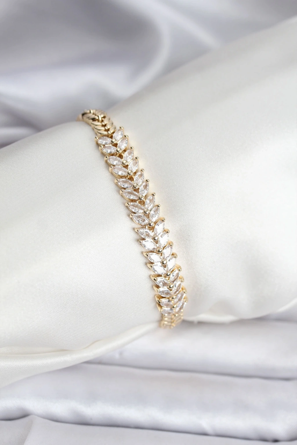 14K Gold Renk Kaplama Başak Model Zirkon Taşlı CM Kadın Bileklik