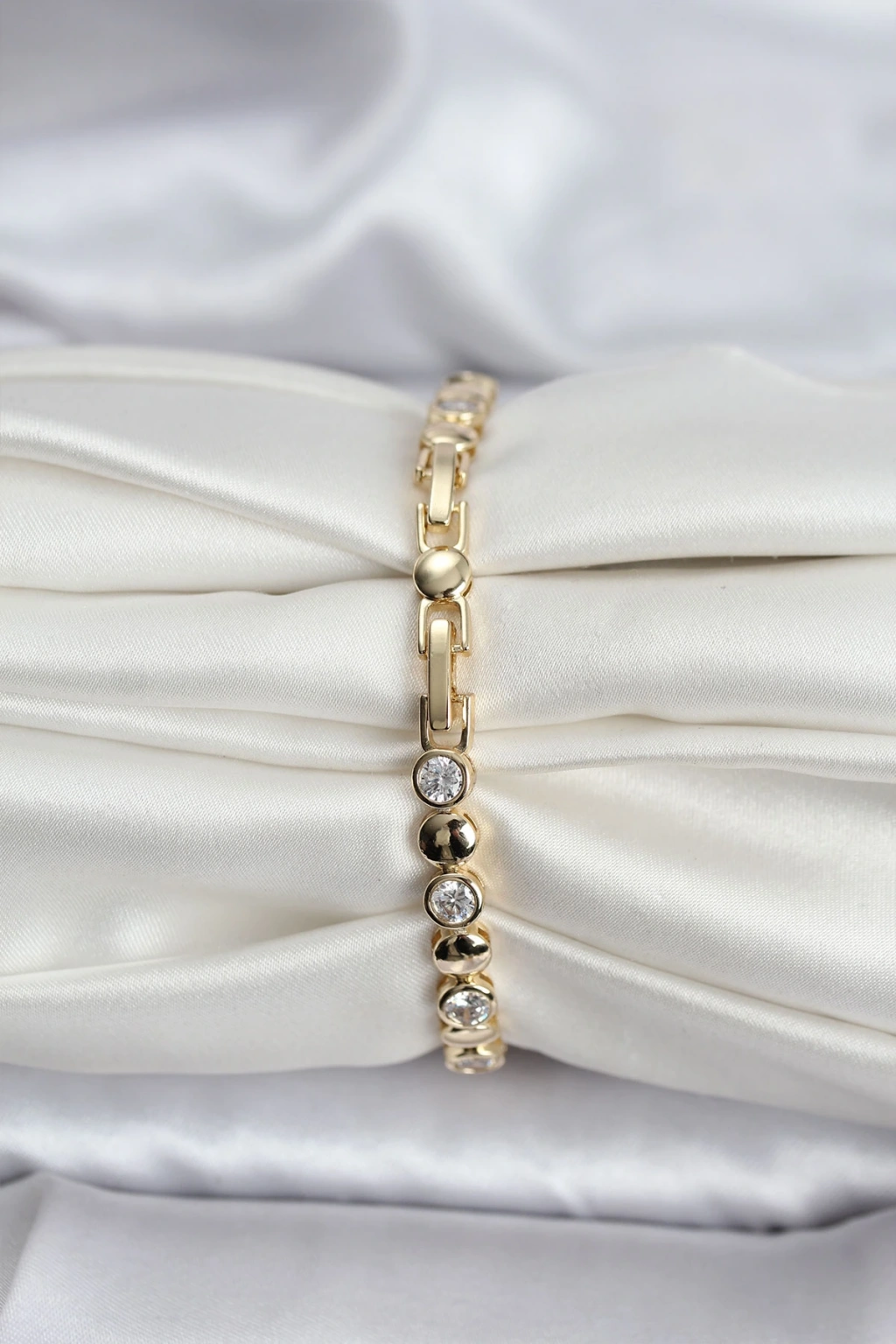 14K Gold Renk Kaplama Zirkon Taşlı CM Kadın Bileklik