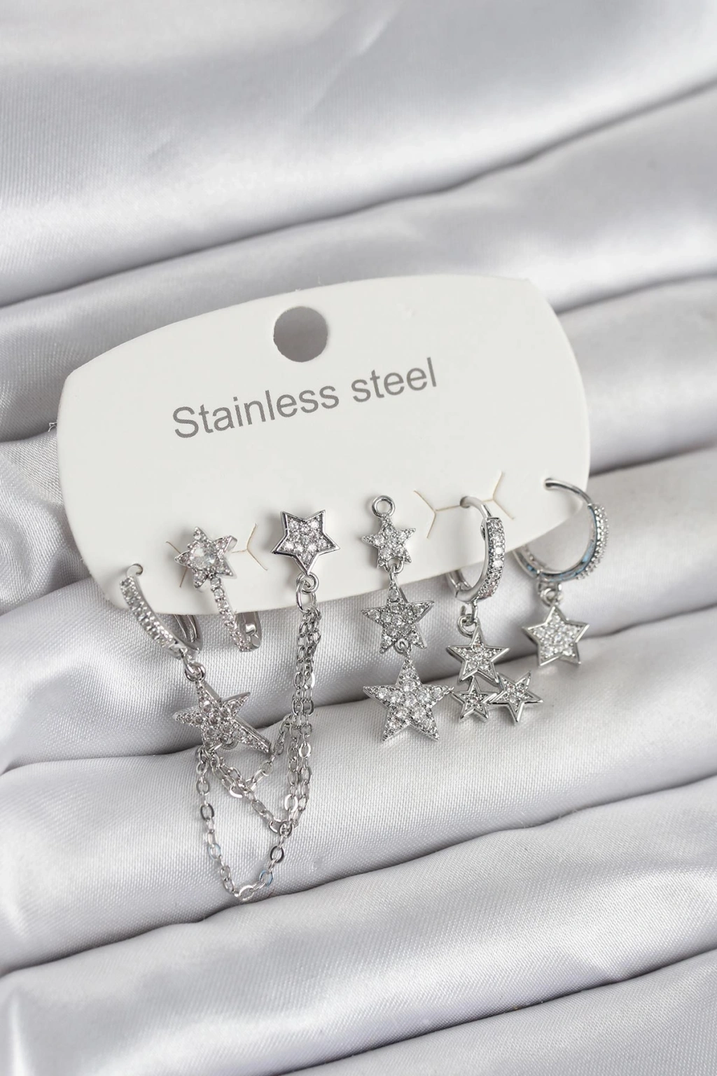 316L Çelik Gold Renk 6'lı Set Zincirli Yıldız Modelli Kadın Küpe