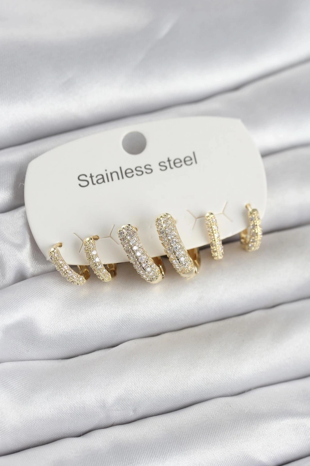 316L Çelik Gold Renk 6'lı Set Zirkon Taşlı Halka Model Kadın Küpe