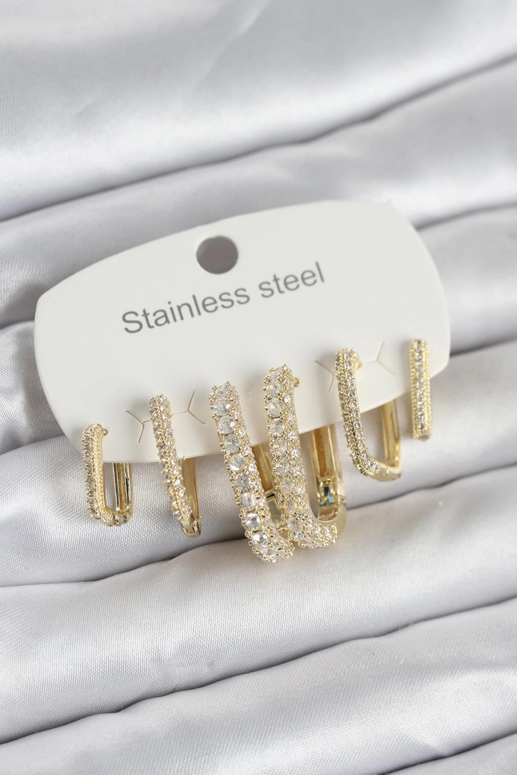 316L Çelik Gold Renk 6'lı Set Zirkon Taşlı Kadın Küpe