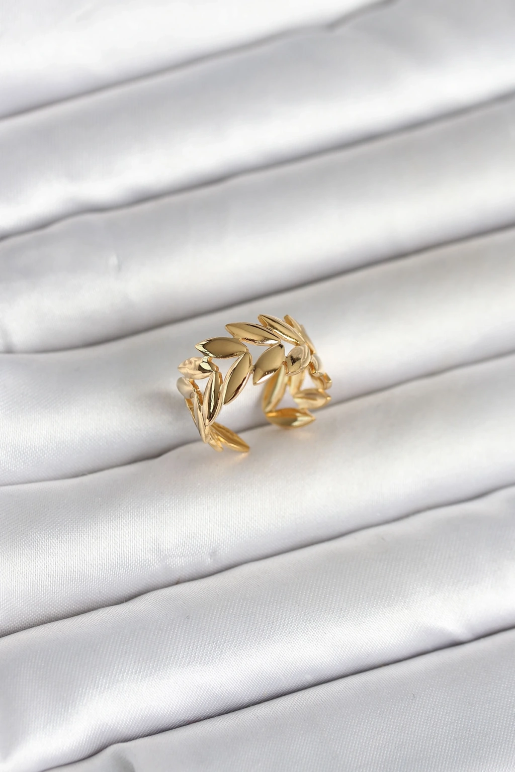 316L Çelik Gold Renk Başak Figür Kadın Yüzük