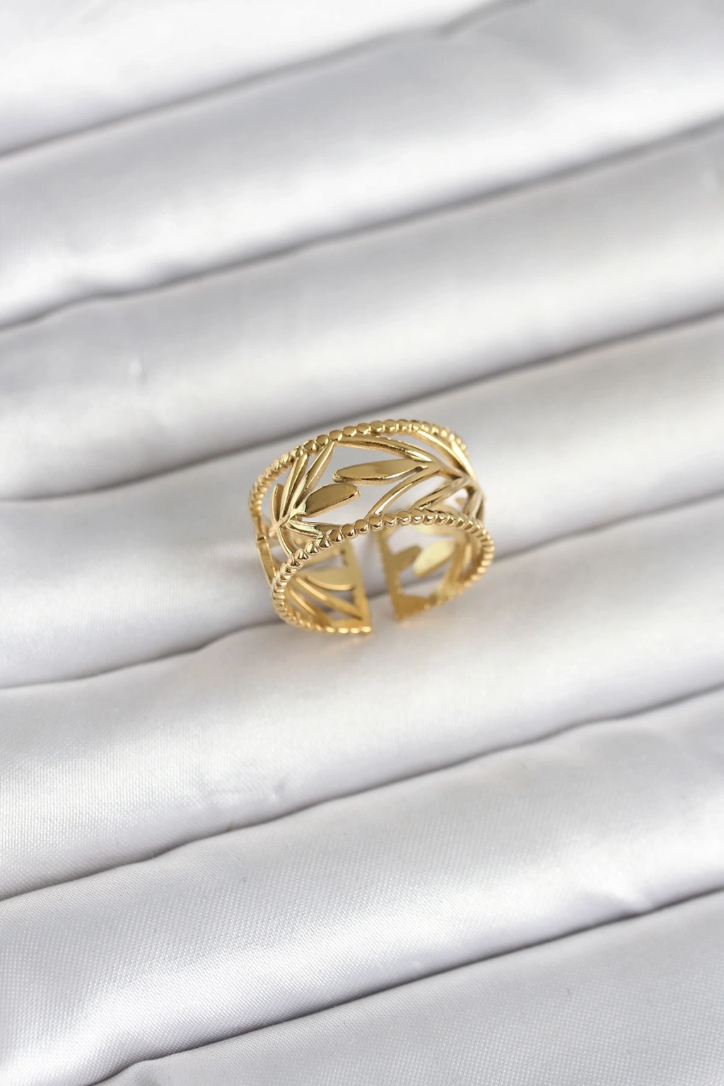 316L Çelik Gold Renk Başak Model Kadın Yüzük