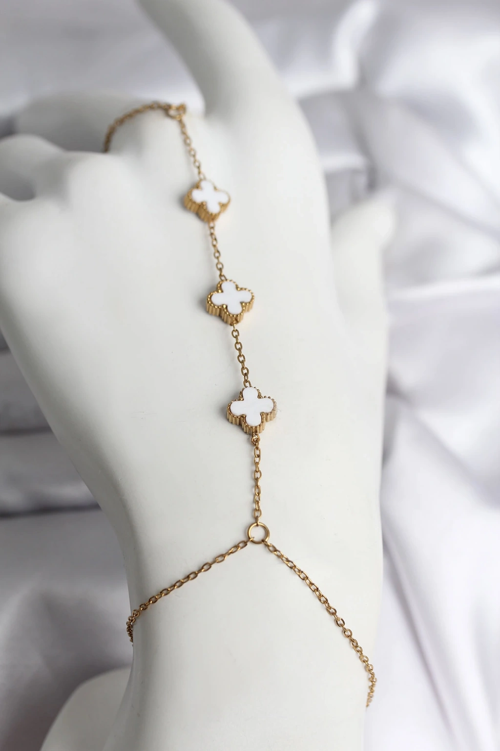 316L Çelik Gold Renk Beyaz Yonca Model Kadın Şahmeran