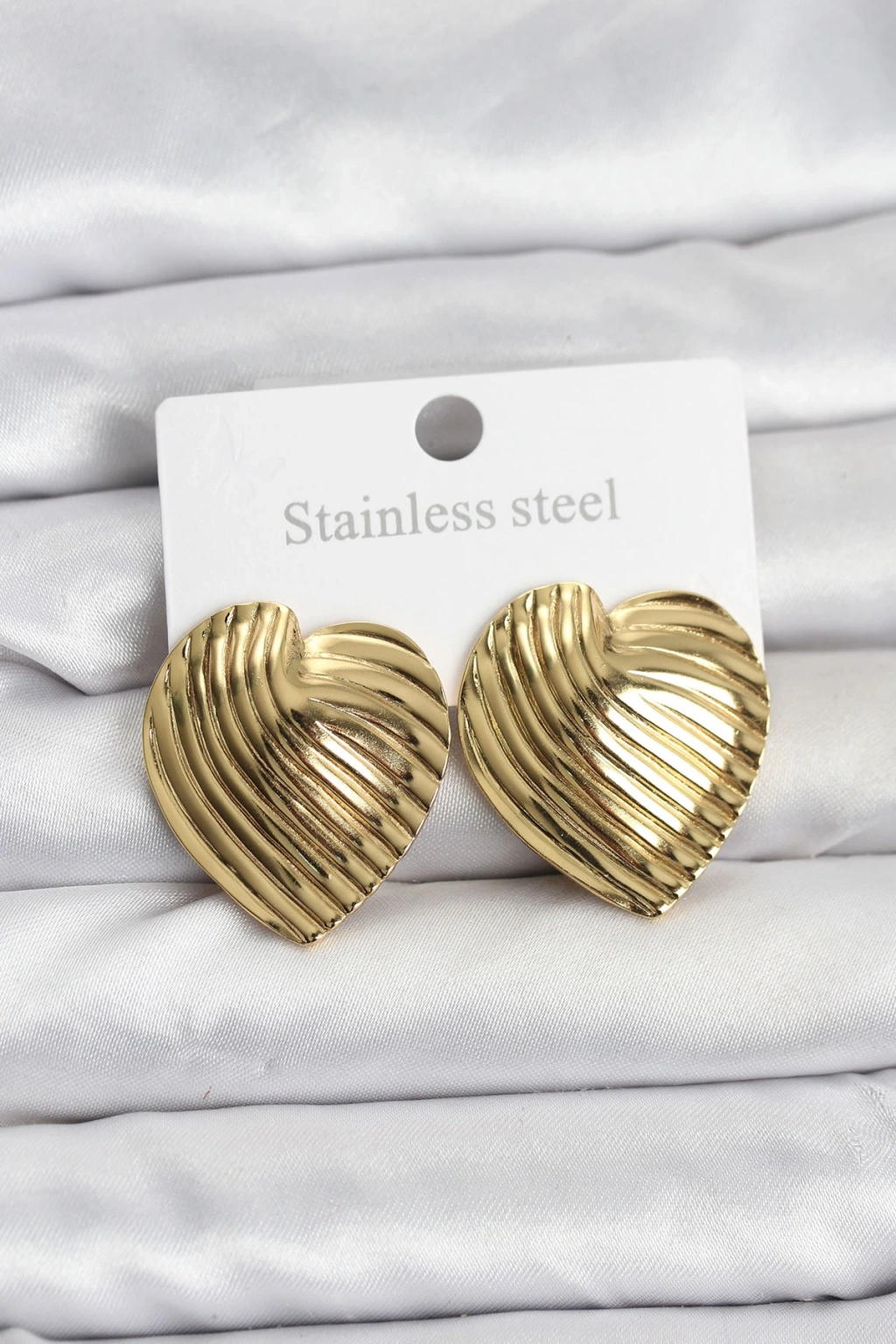 316L Çelik Gold Renk Kalp Model Kadın Küpe
