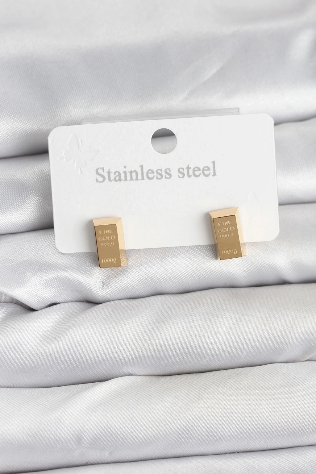 316L Çelik Gold Renk Külçe Altın Model Kadın Küpe