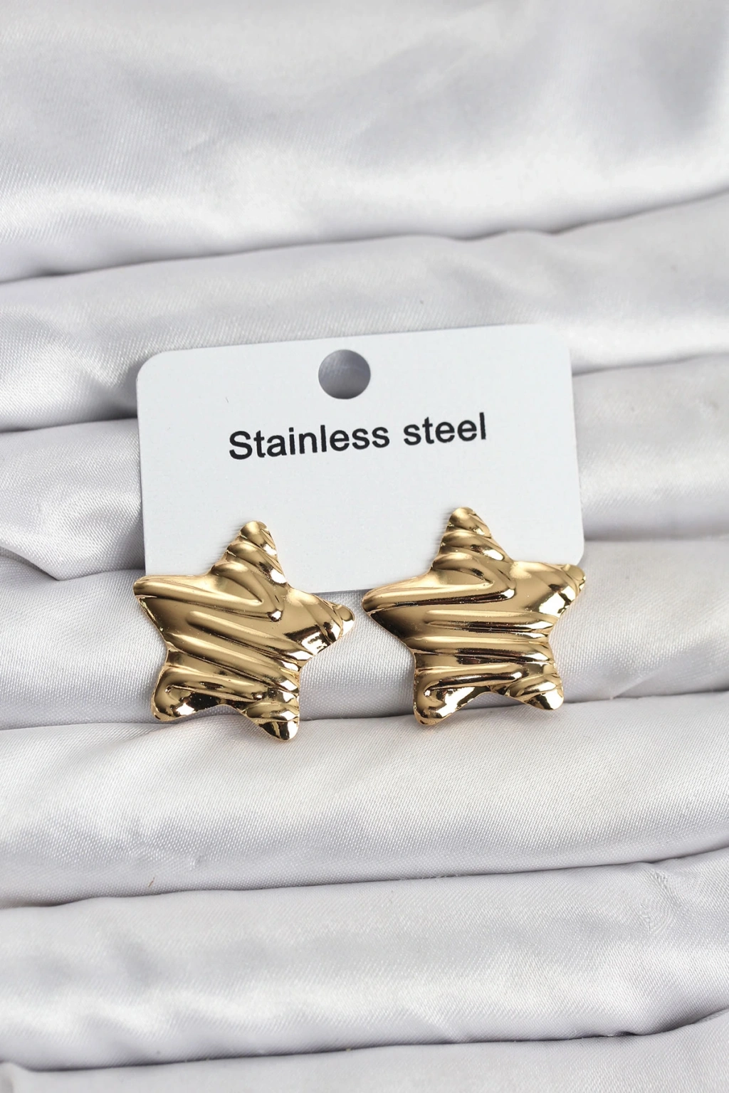 316L Çelik Gold Renk Yıldız Model Kadın Küpe