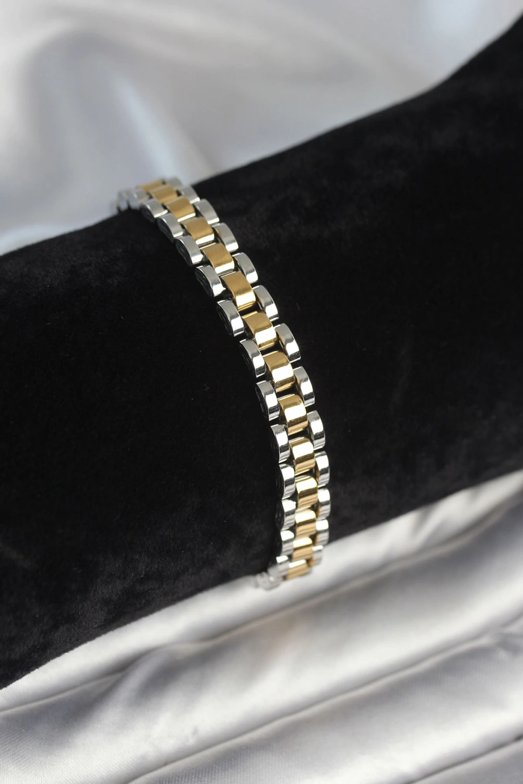 316L Çelik 9 mm Kalınlıkta Gold ve Gümüş Renkli Erkek Bileklik