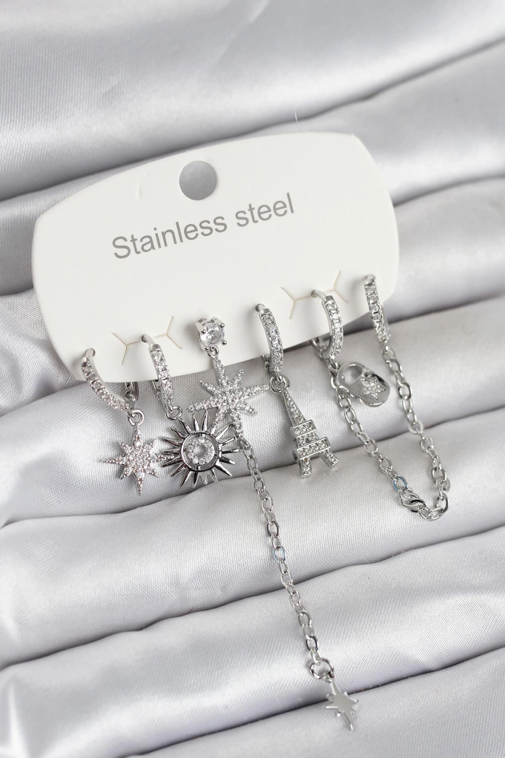 316L Çelik Gümüş Renk 6'lı Set Charmlı Kadın Küpe