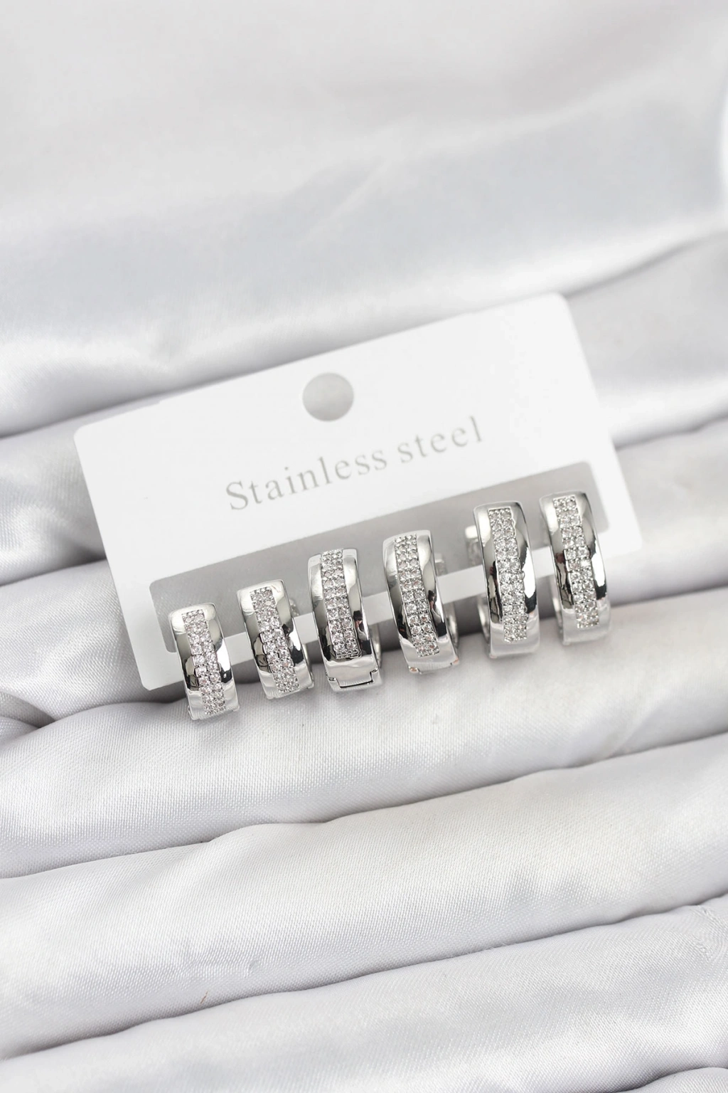 316L Çelik Gümüş Renk Zirkon Taşlı Halka Küpe Seti
