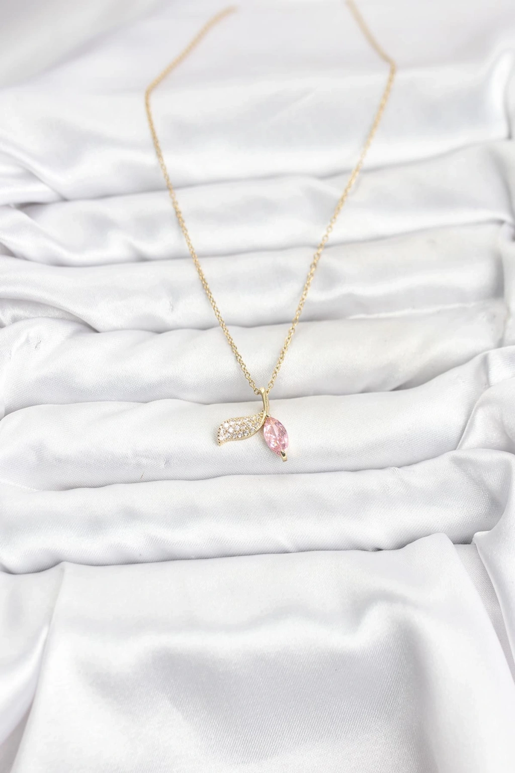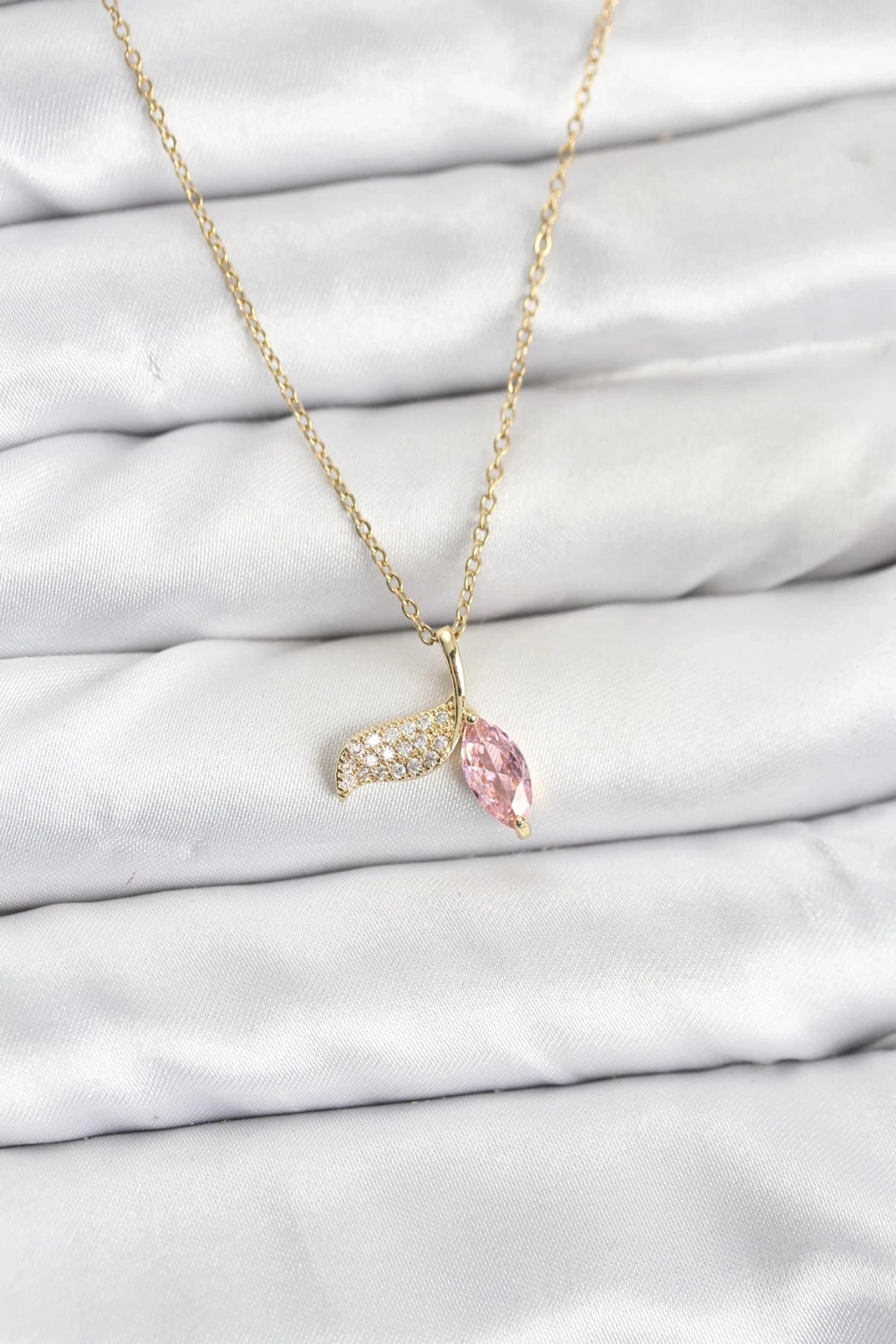 316L Çelik Zincir Gold Renk Balık Kuyruğu Model Zirkon Taşlı Kadın Kolye