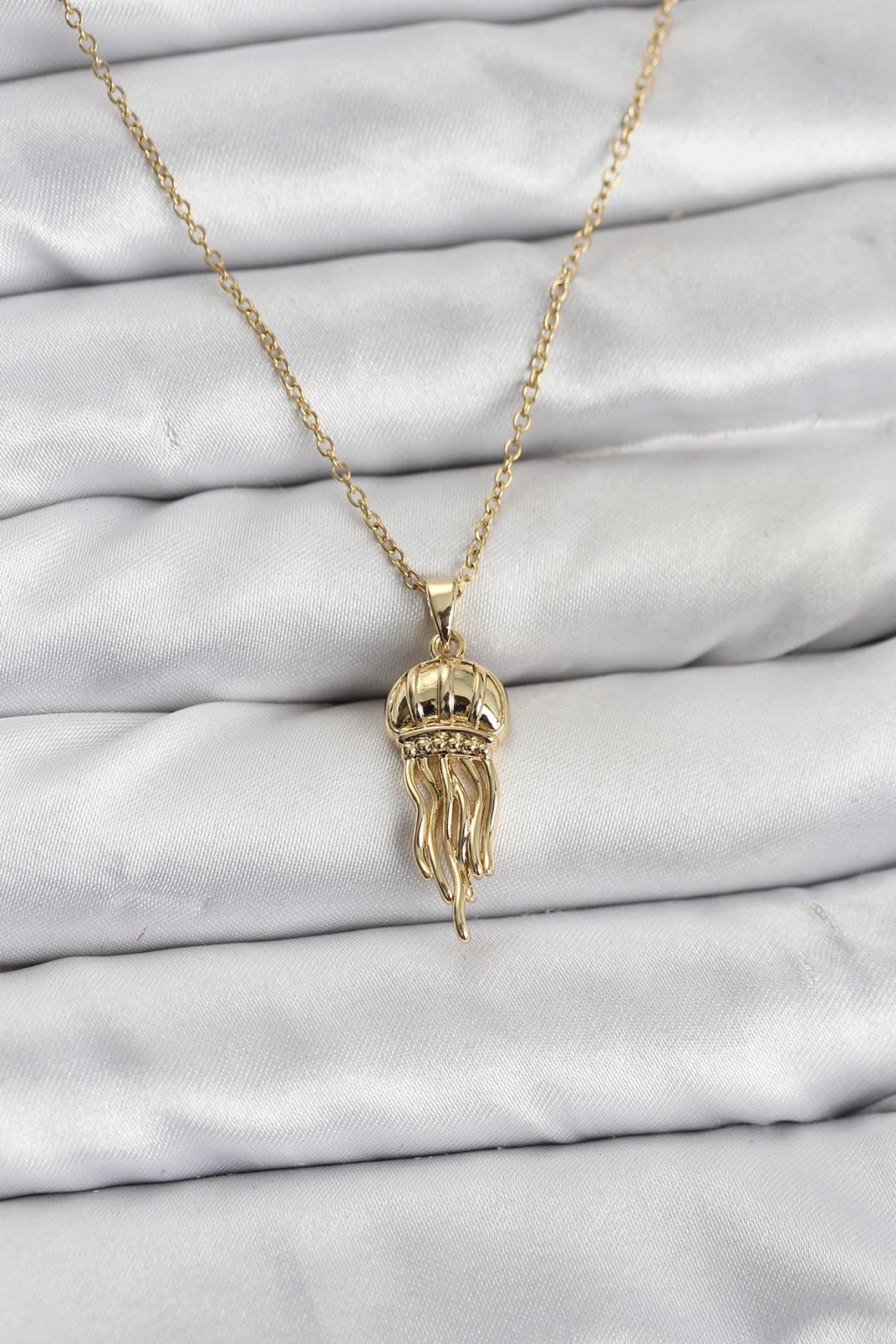 316L Çelik Zincir Gold Renk Deniz Anası Model Zirkon Taşlı Kadın Kolye