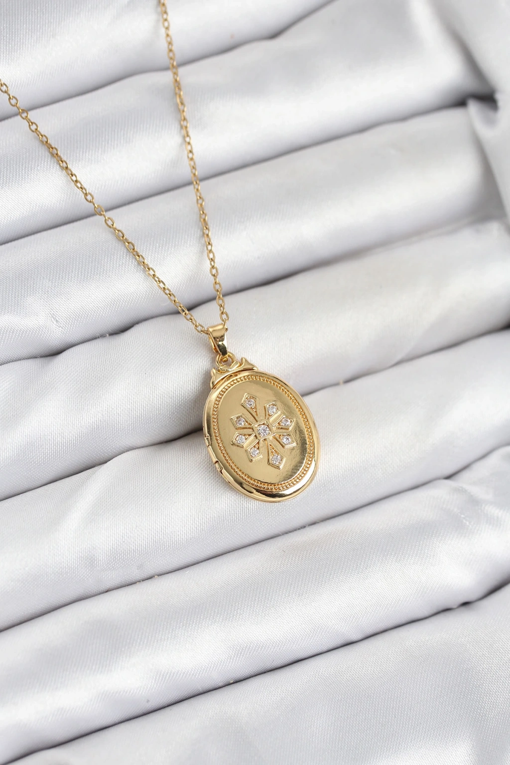 316L Çelik Zincir Gold Renk Kapaklı Açılabilir Model Kadın Kolye