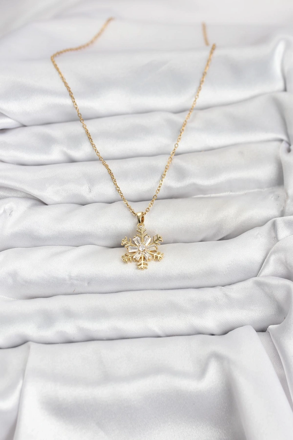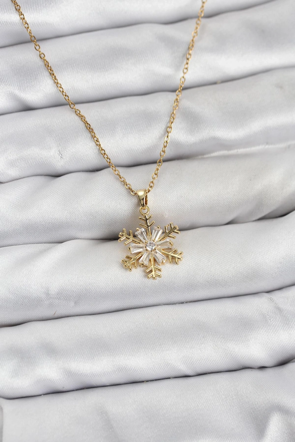 316L Çelik Zincir Gold Renk Kar Tanesi Model Zirkon Taşlı Kadın Kolye