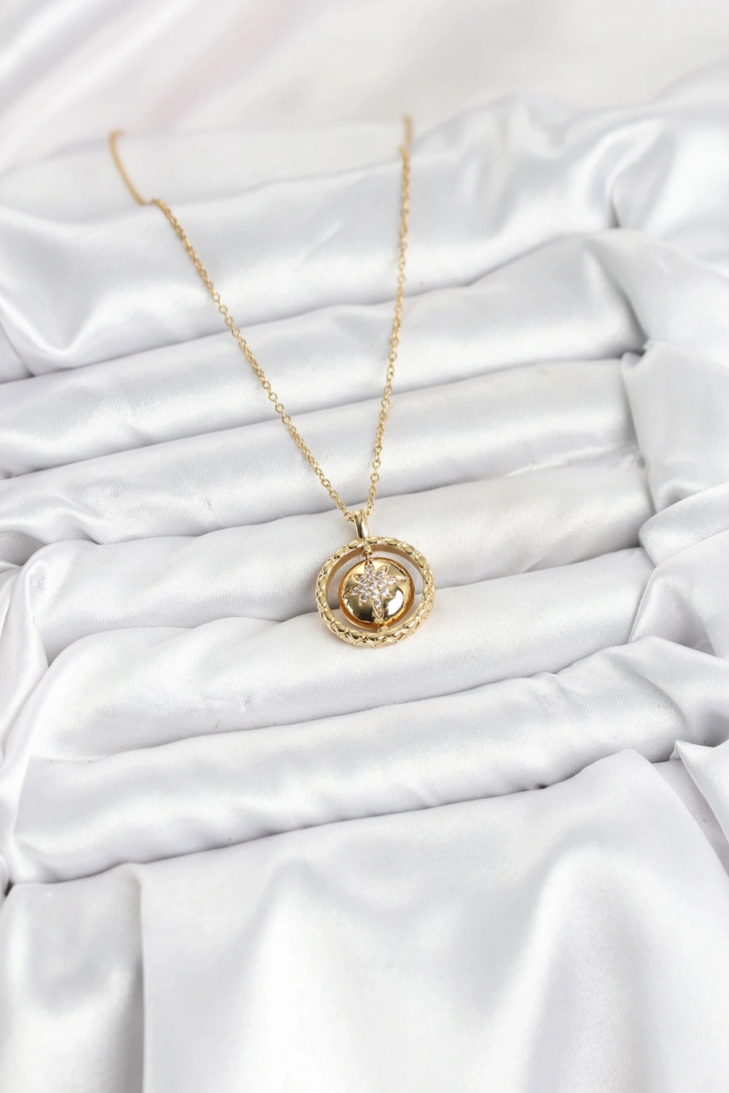 316L Çelik Zincir Gold Renk Kutup Yıldızı Model Kadın Kolye