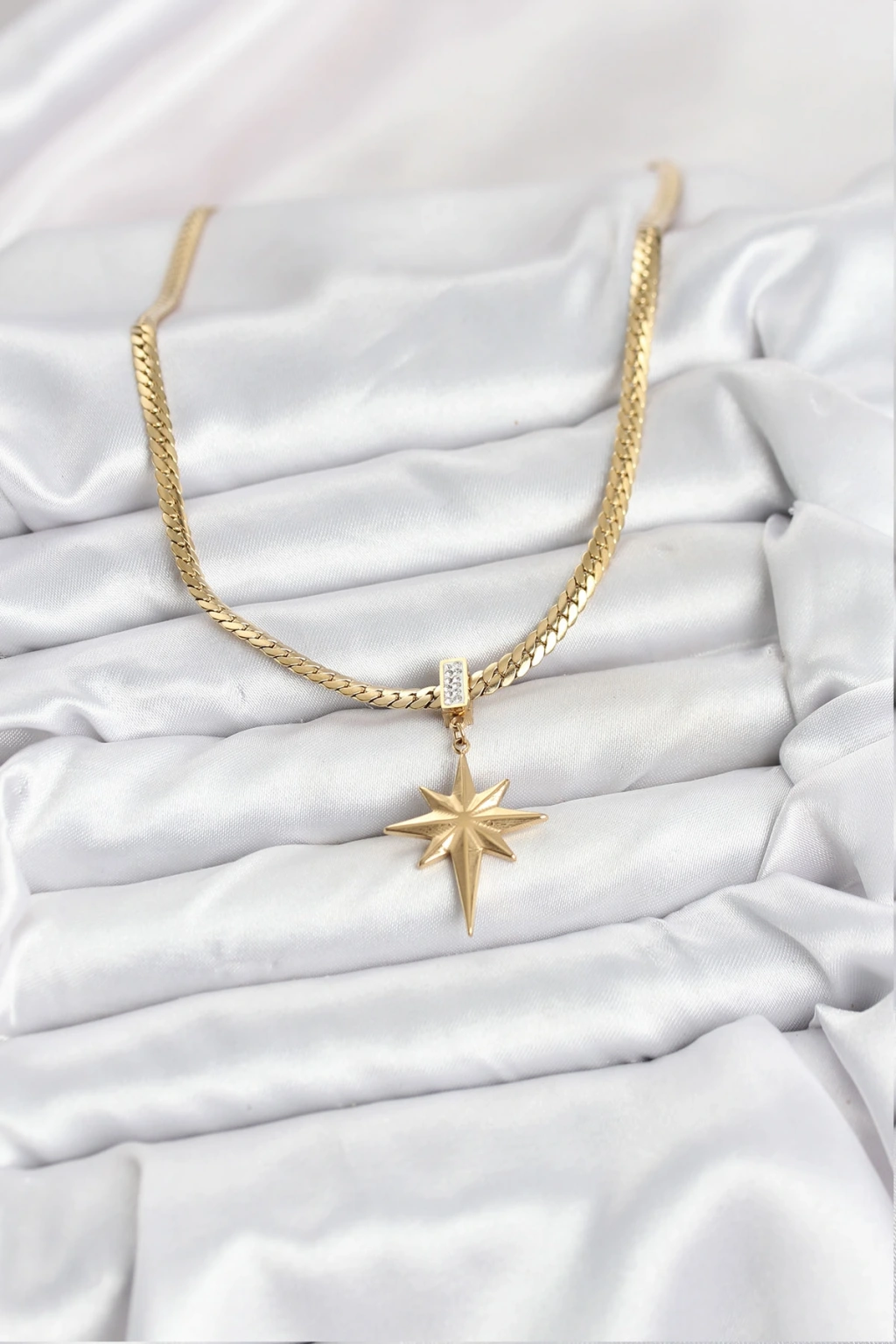 316L Çelik Zincir Gold Renk Kutup Yıldızı Model Kadın Kolye