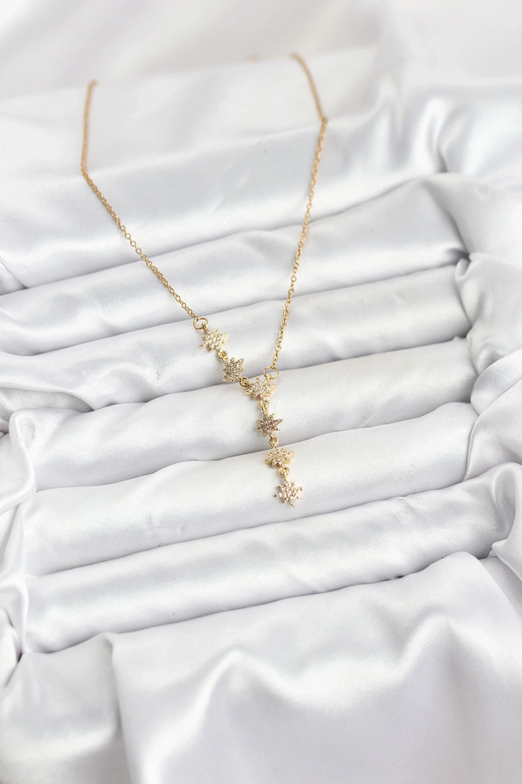 Pirinç Gold Renk Zincirli Yıldızlı Model Kadın Kolye