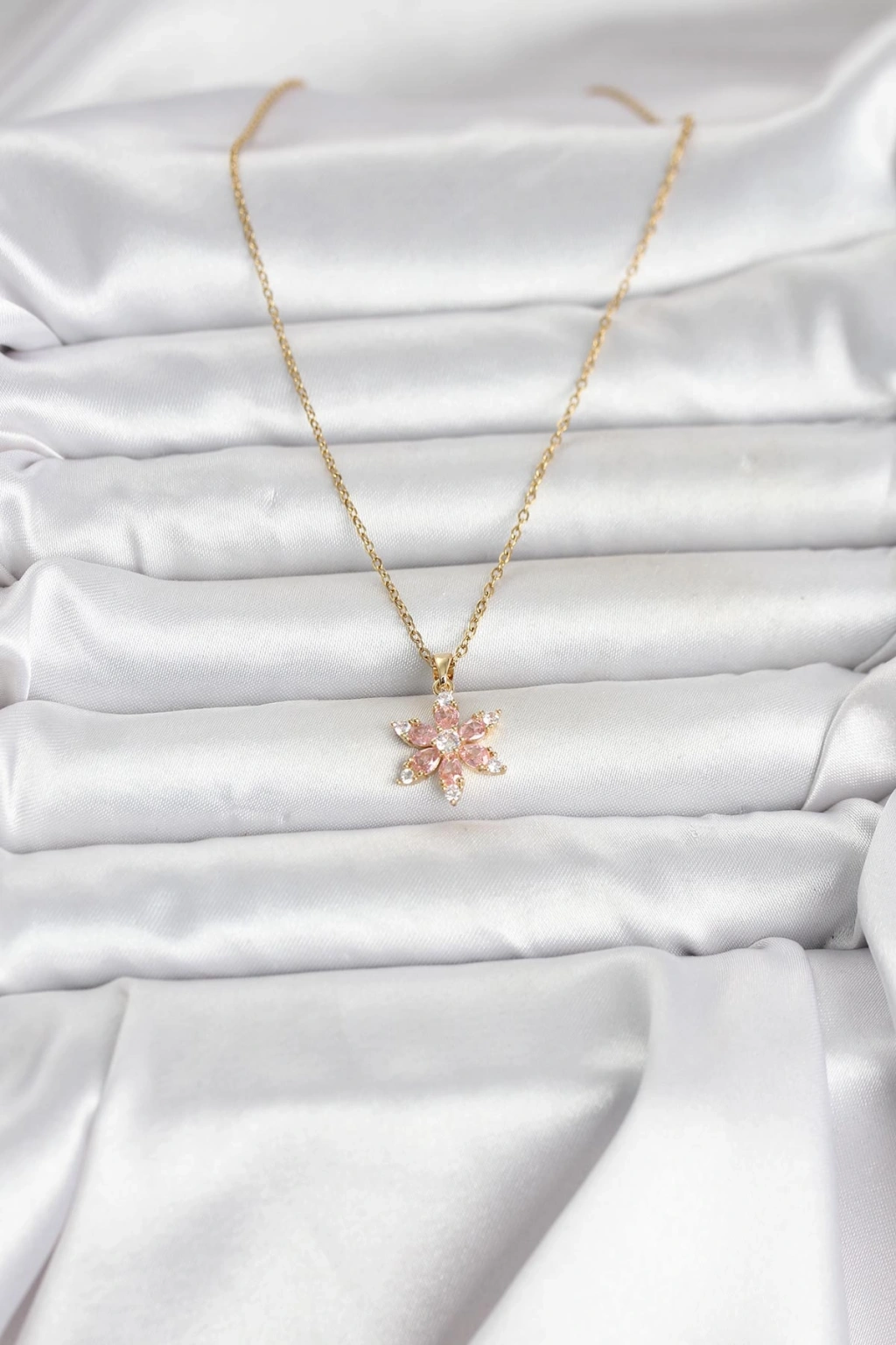 316L Çelik Zincir Gold Renk Pembe Lotus Model Kadın Kolye