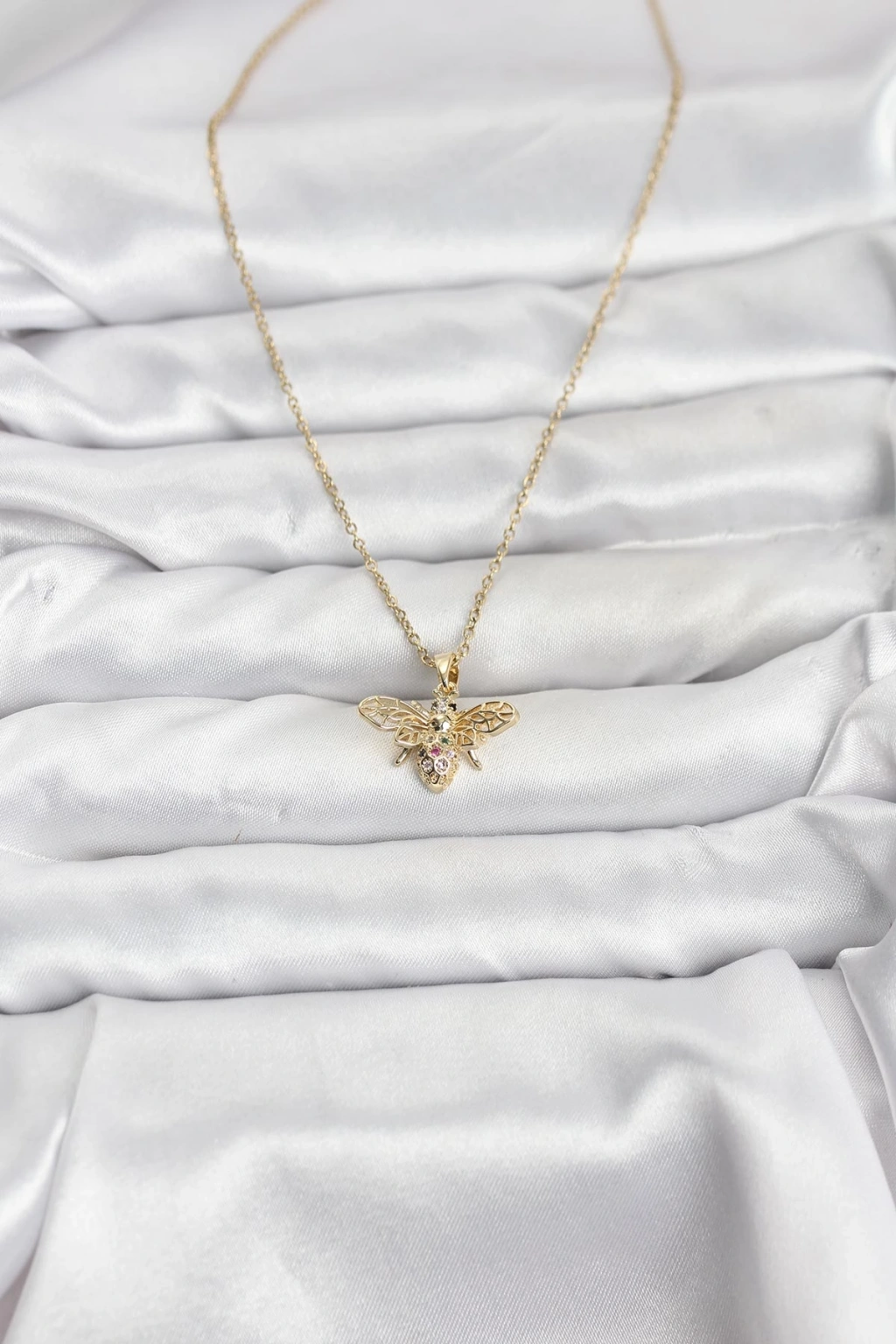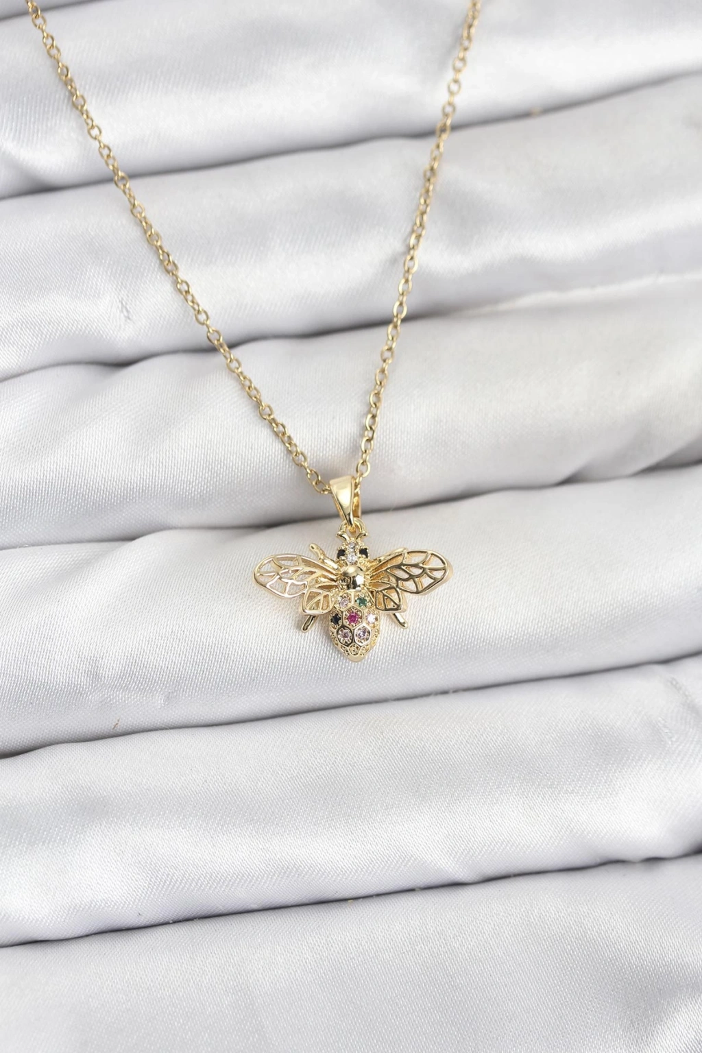 316L Çelik Zincir Gold Renk Sinek Model Zirkon Taşlı Kadın Kolye