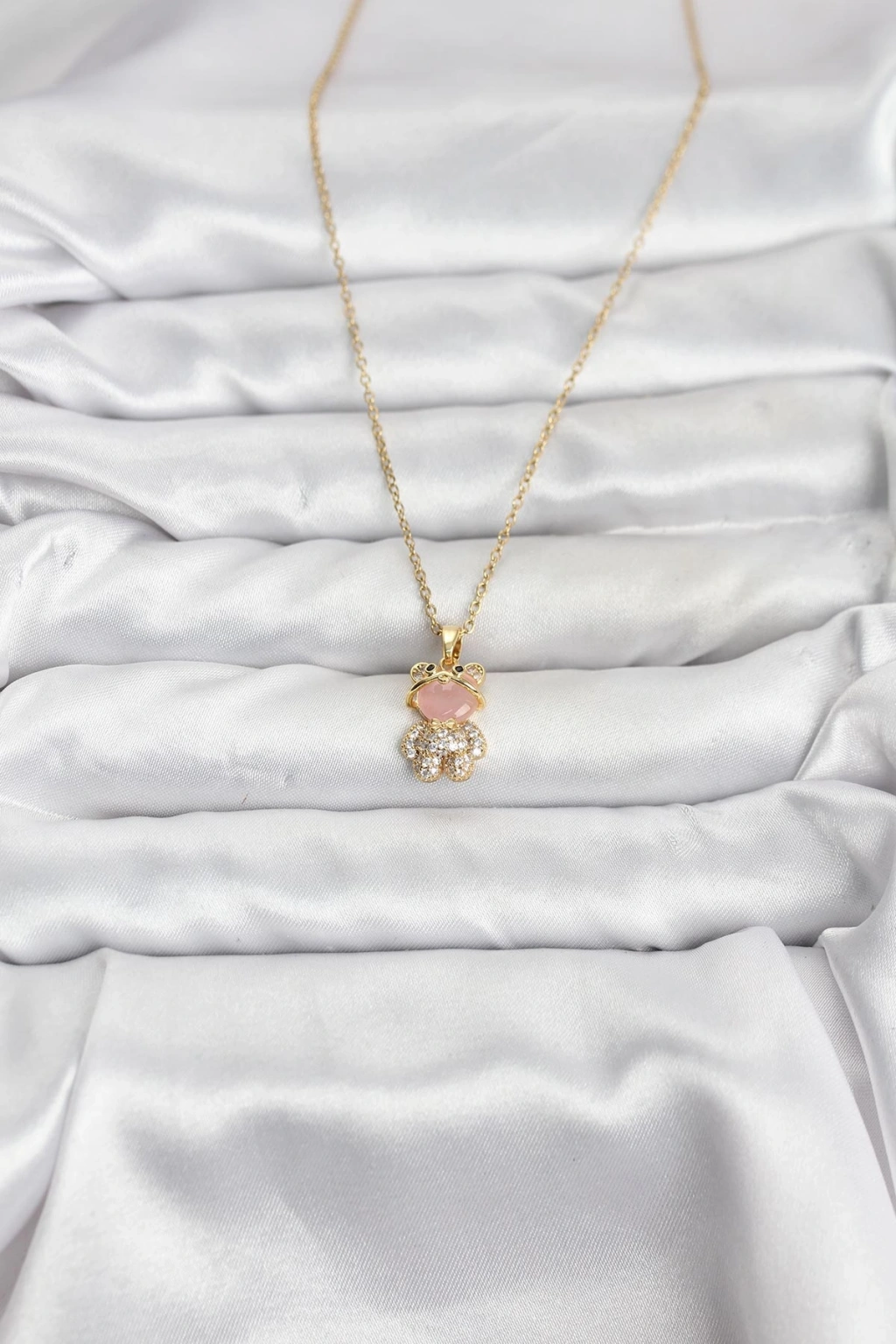 316L Çelik Zincir Gold Renk Teddy Bear Model Zirkon Taşlı Kadın Kolye