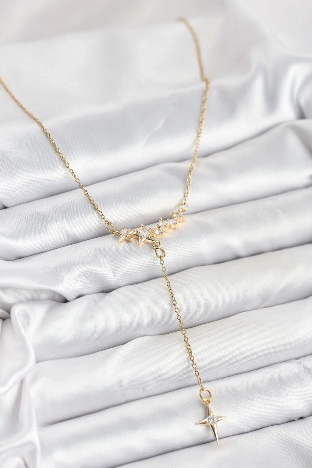 Pirinç Gold Renk Zincirli Yıldızlı Model Kadın Kolye