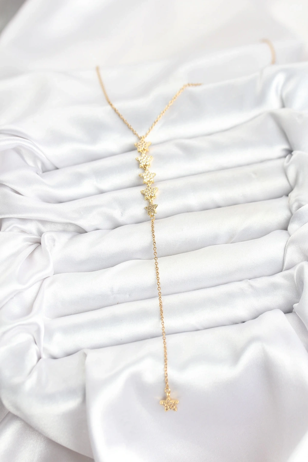 Pirinç Gold Renk Zincirli Yıldızlı Model Kadın Kolye