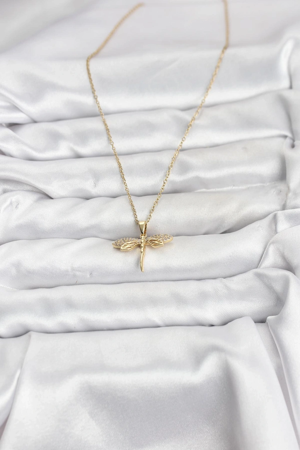 316L Çelik Zincir Gold Renk Yusufçuk Model Zirkon Taşlı Kadın Kolye