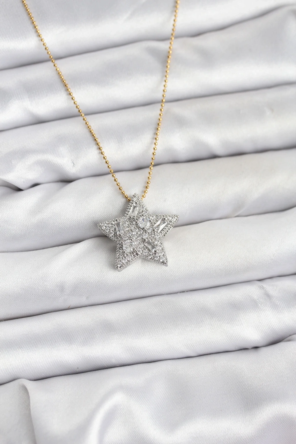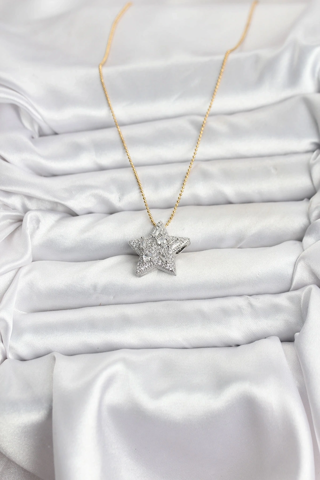 316L Çelik Zincir Gold Renk Zincirli Gümüş Yıldız Model Kadın Kolye