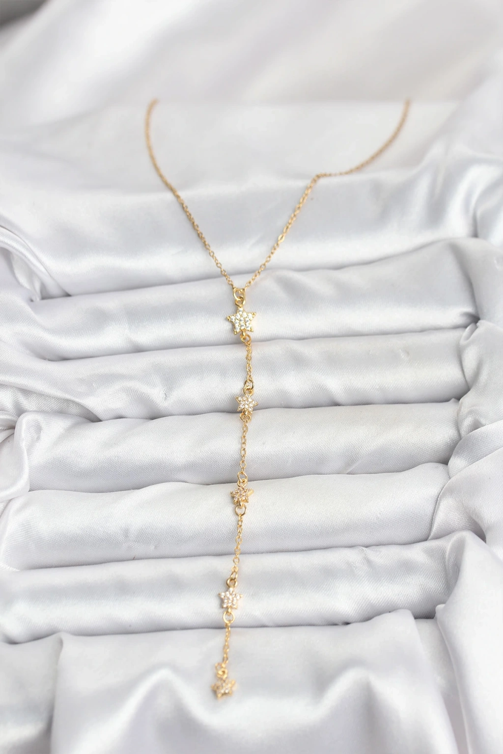 Pirinç Gold Renk Zincirli Yıldızlı Model Kadın Kolye