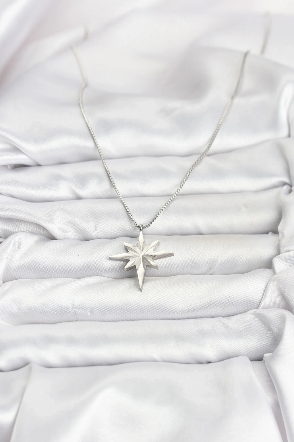 316L Çelik Zincir Gümüş Renk Kutup Yıldızı Model 60 cm Zincir Kadın Kolye