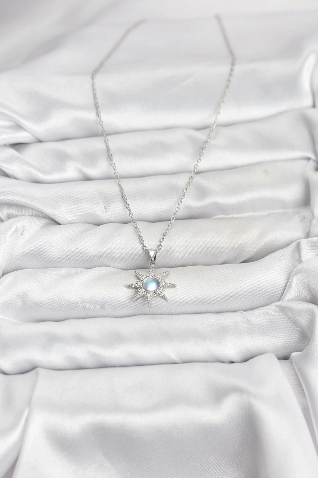 316L Çelik Zincir Gümüş Renk Kutup Yıldızı Model Zirkon Taşlı Kadın Kolye