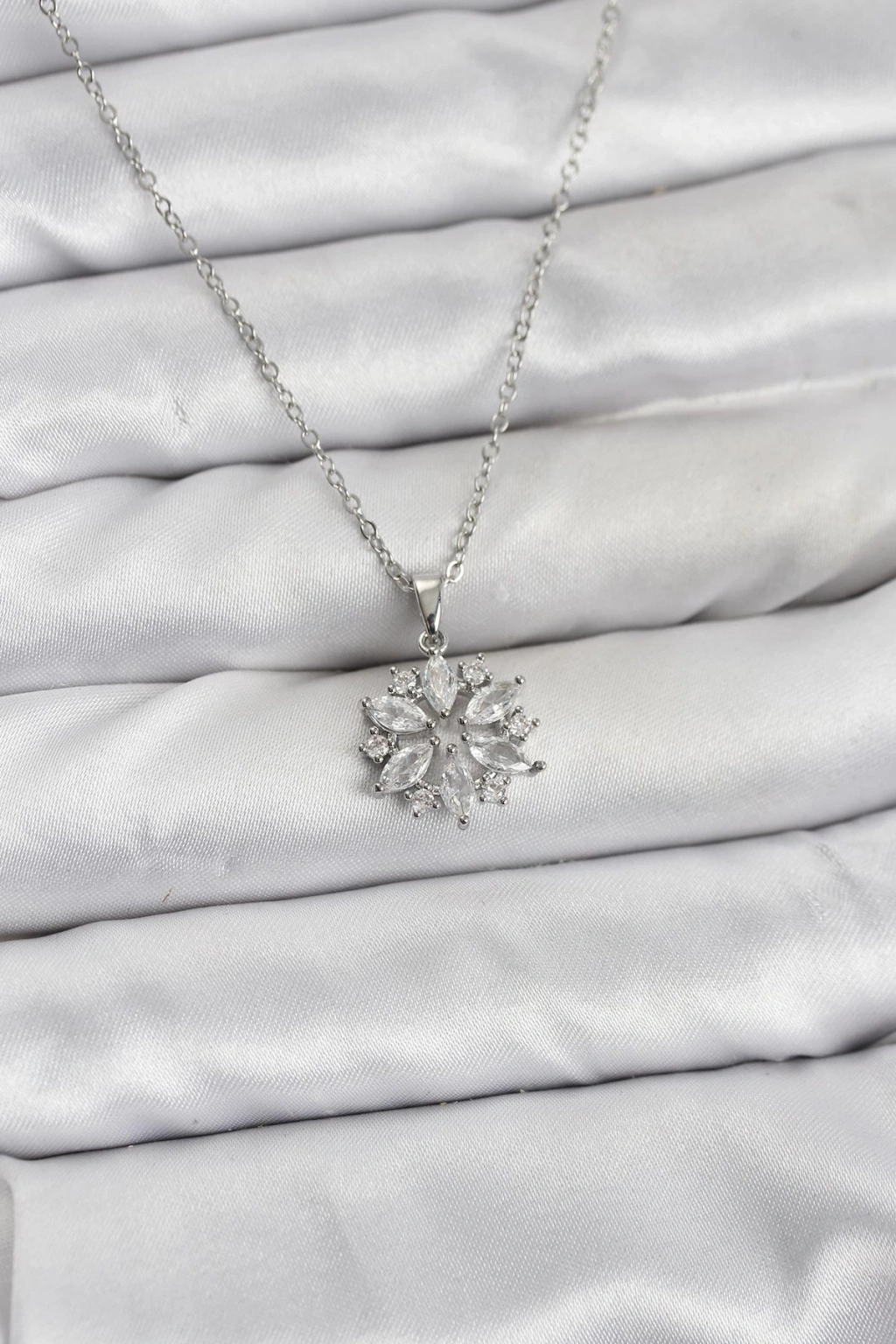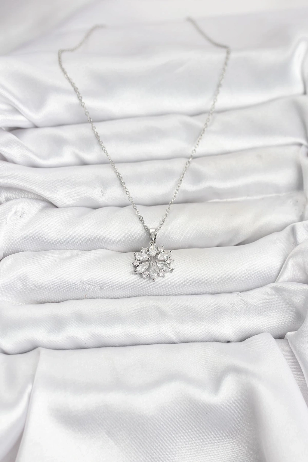 316L Çelik Zincir Gümüş Renk Lotus Model Zirkon Taşlı Kadın Kolye