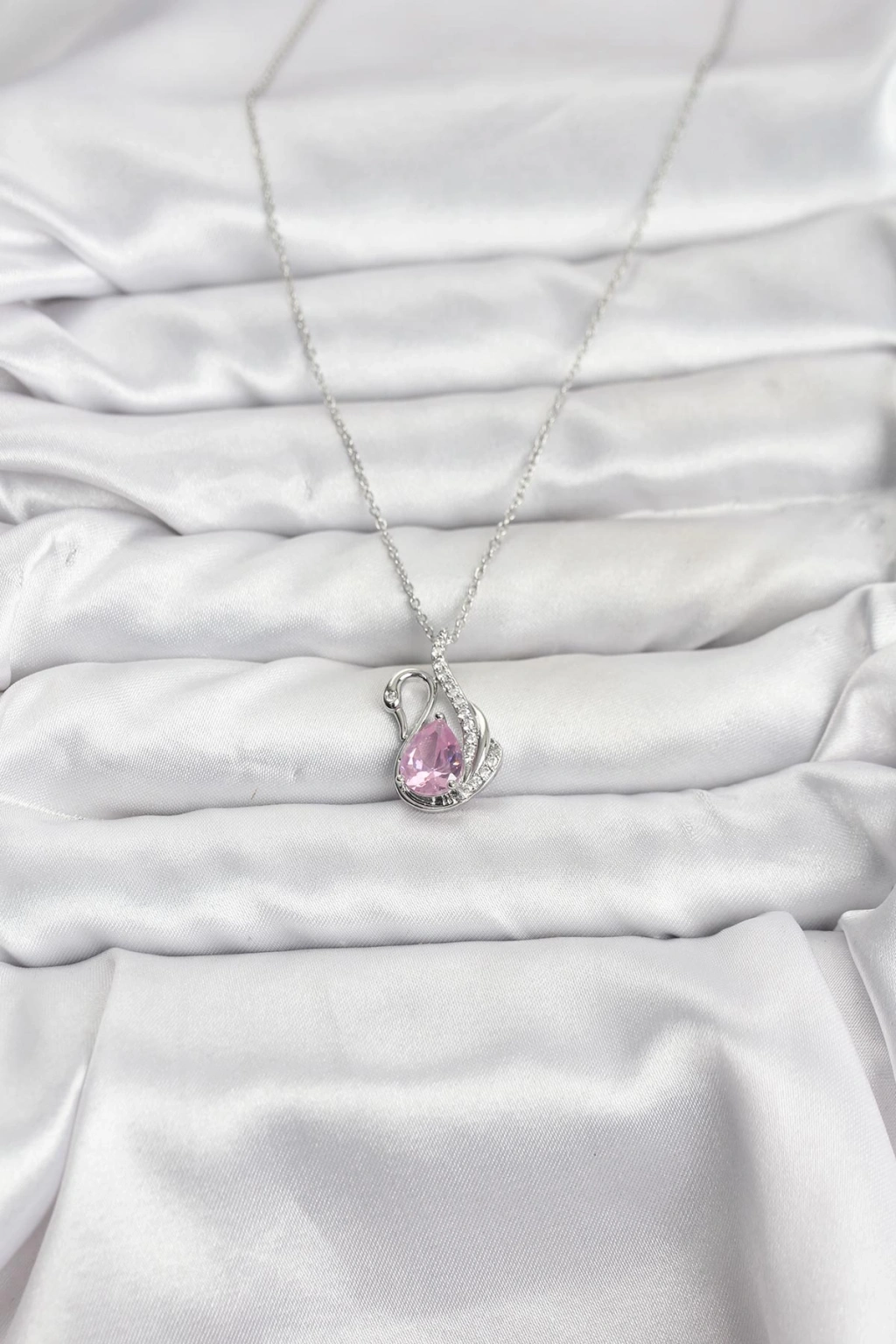 316L Çelik Zincir Gümüş Renk Pembe Kuğu Model Zirkon Taşlı Kadın Kolye
