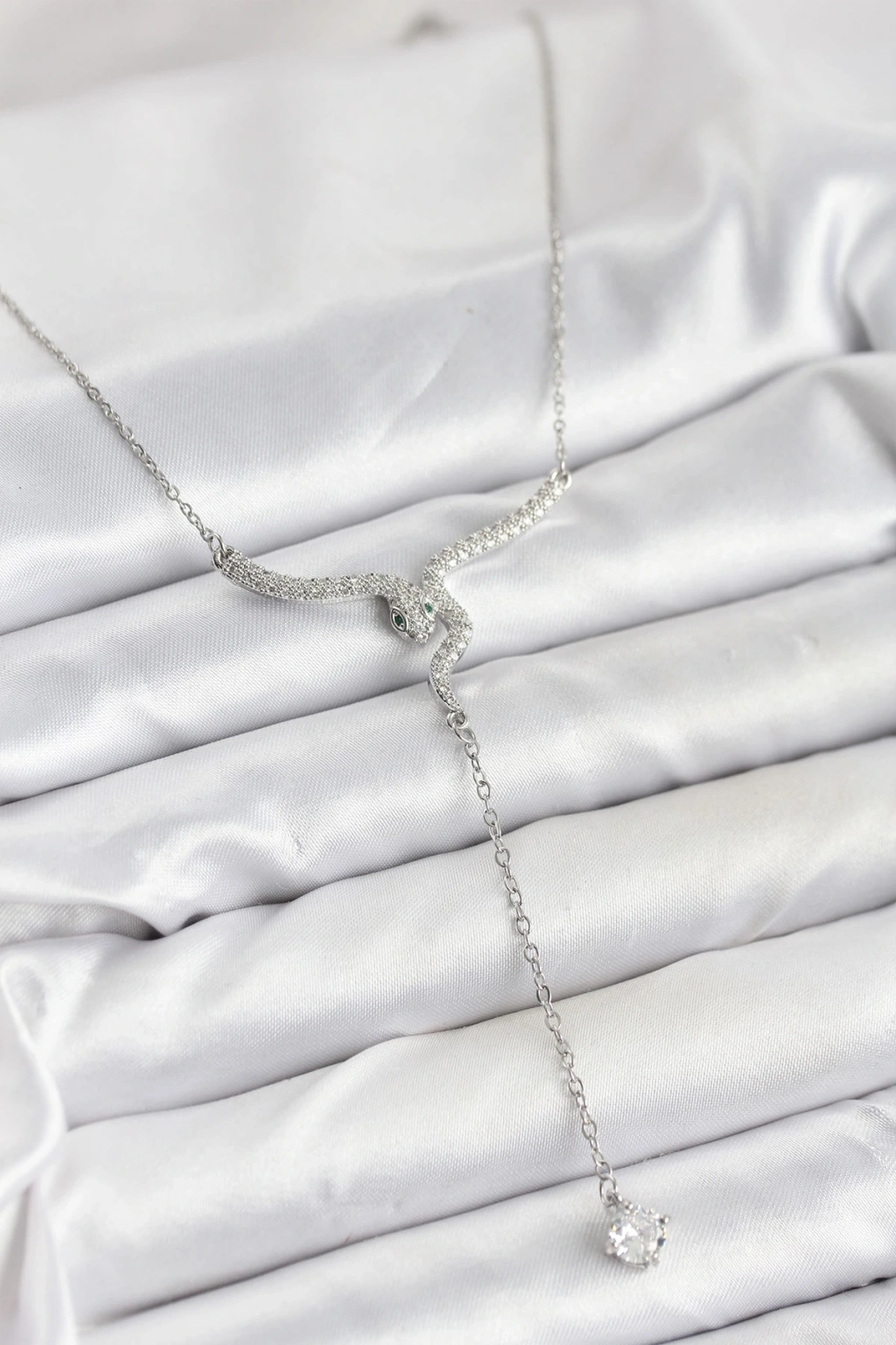 316L Çelik Zincir Gümüş Renk Yılan Model Y Kolye