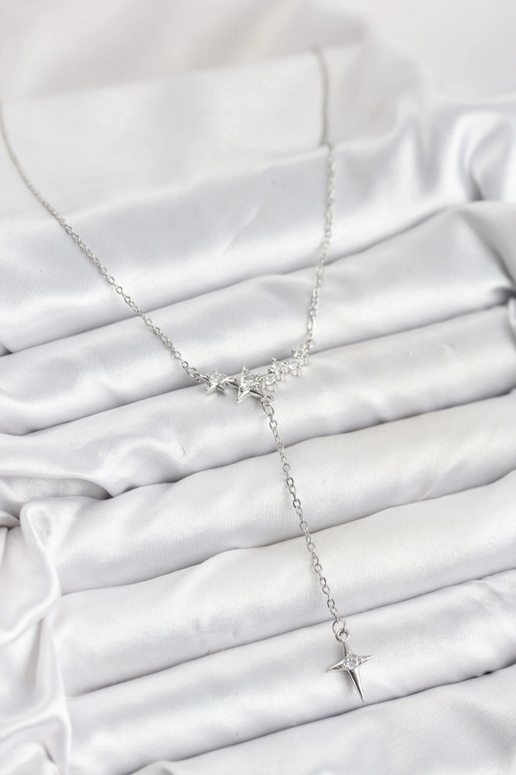 Pirinç Gümüş Renk Yıldız Model Kadın Kolye