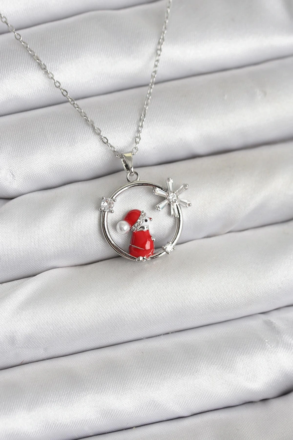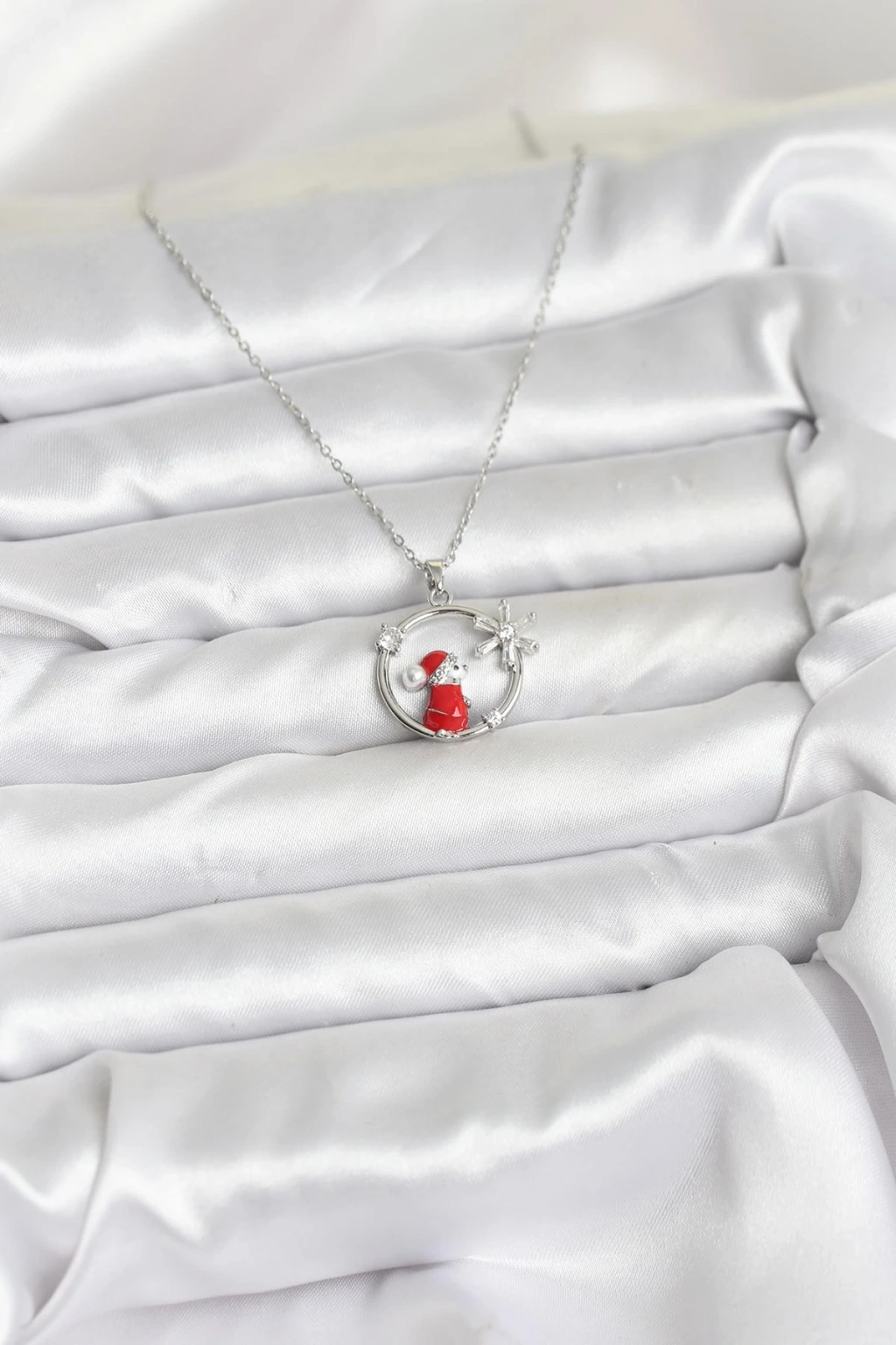 316L Çelik Zincir Gümüş Zirkon Taşlı Yılbaşı Tema Kadın Kolye