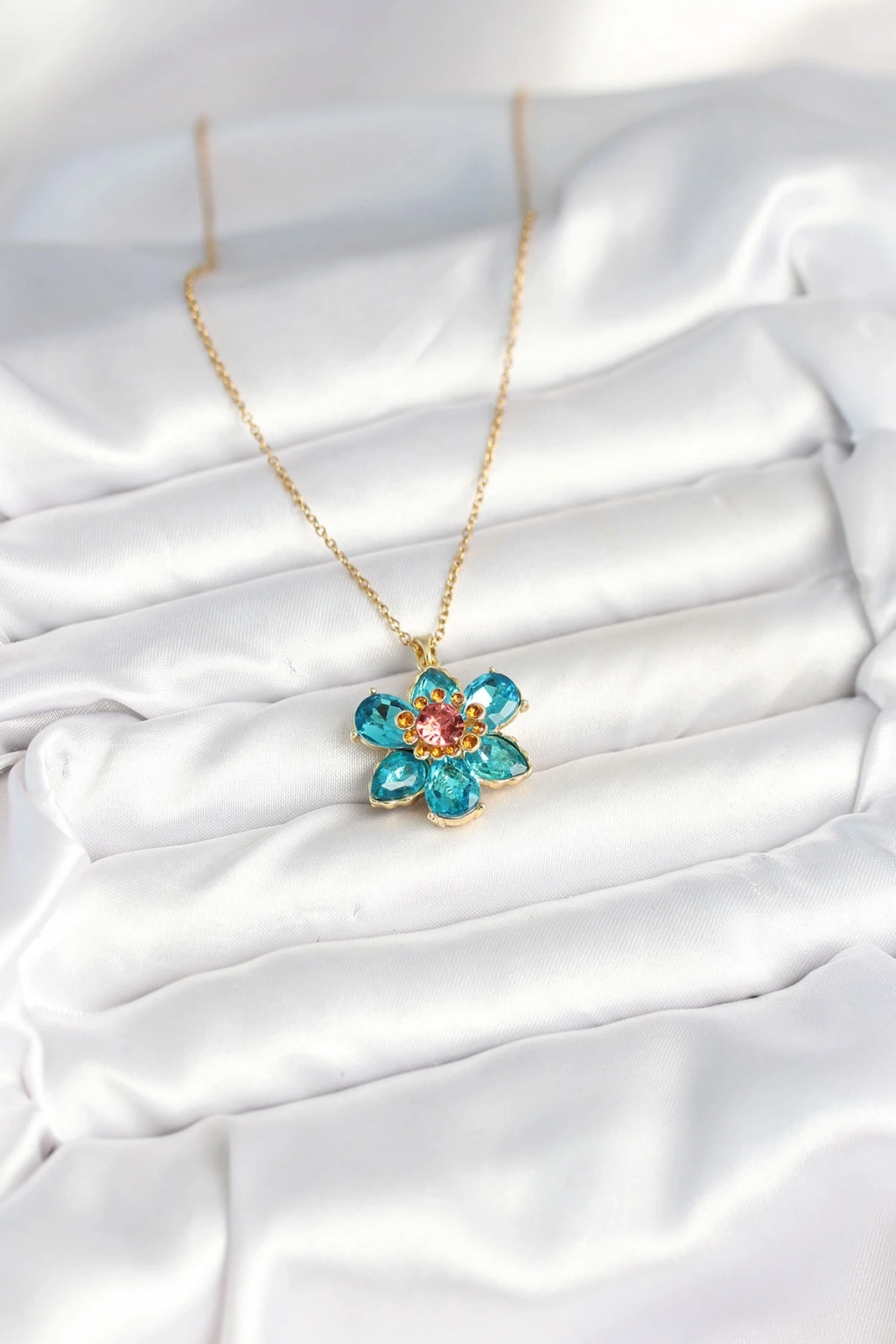 316L Çelik Zincirli Mavi Çiçek Model Kadın Kolye