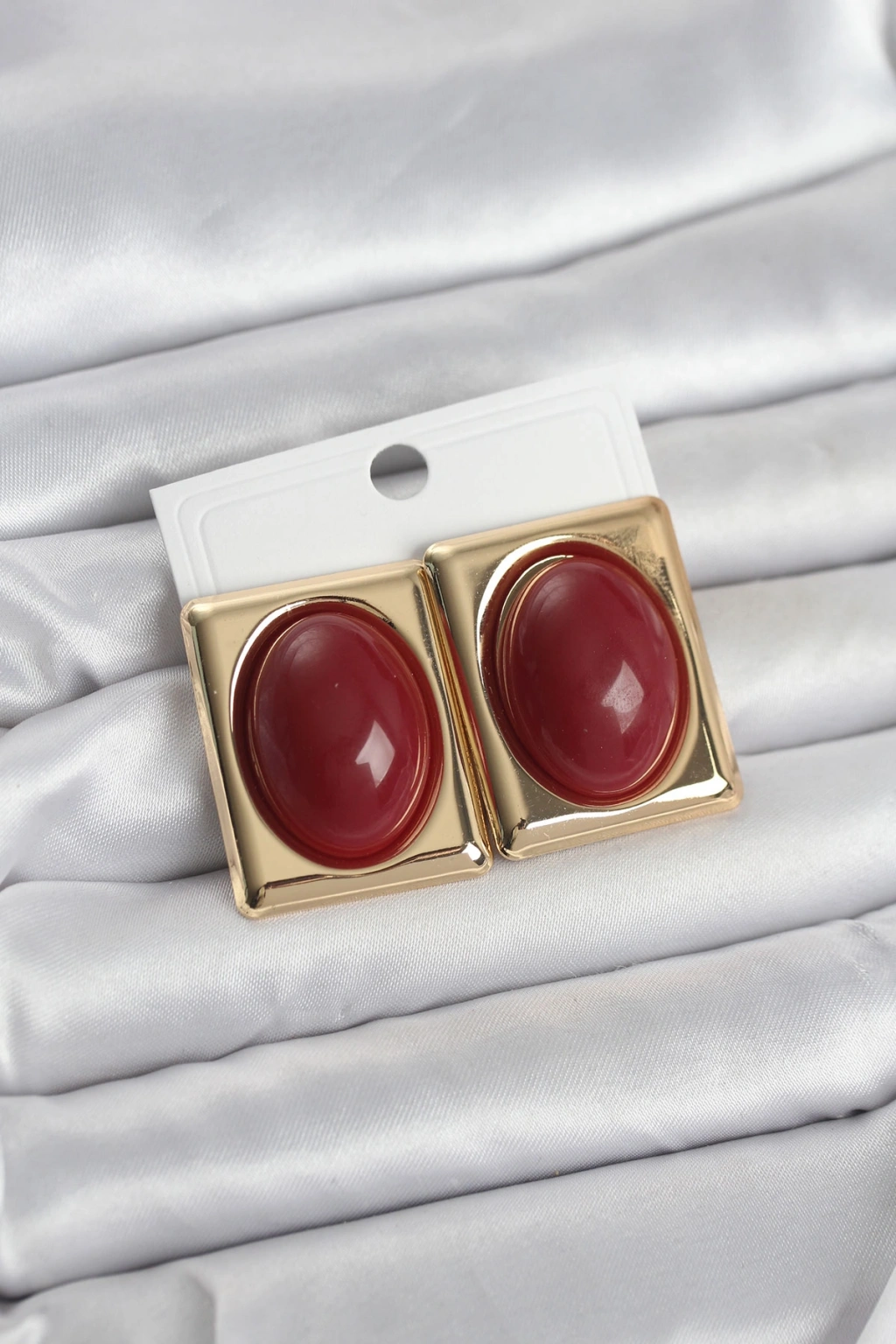 Bordo Kare Model Vintage Gold Renk Kadın Küpe