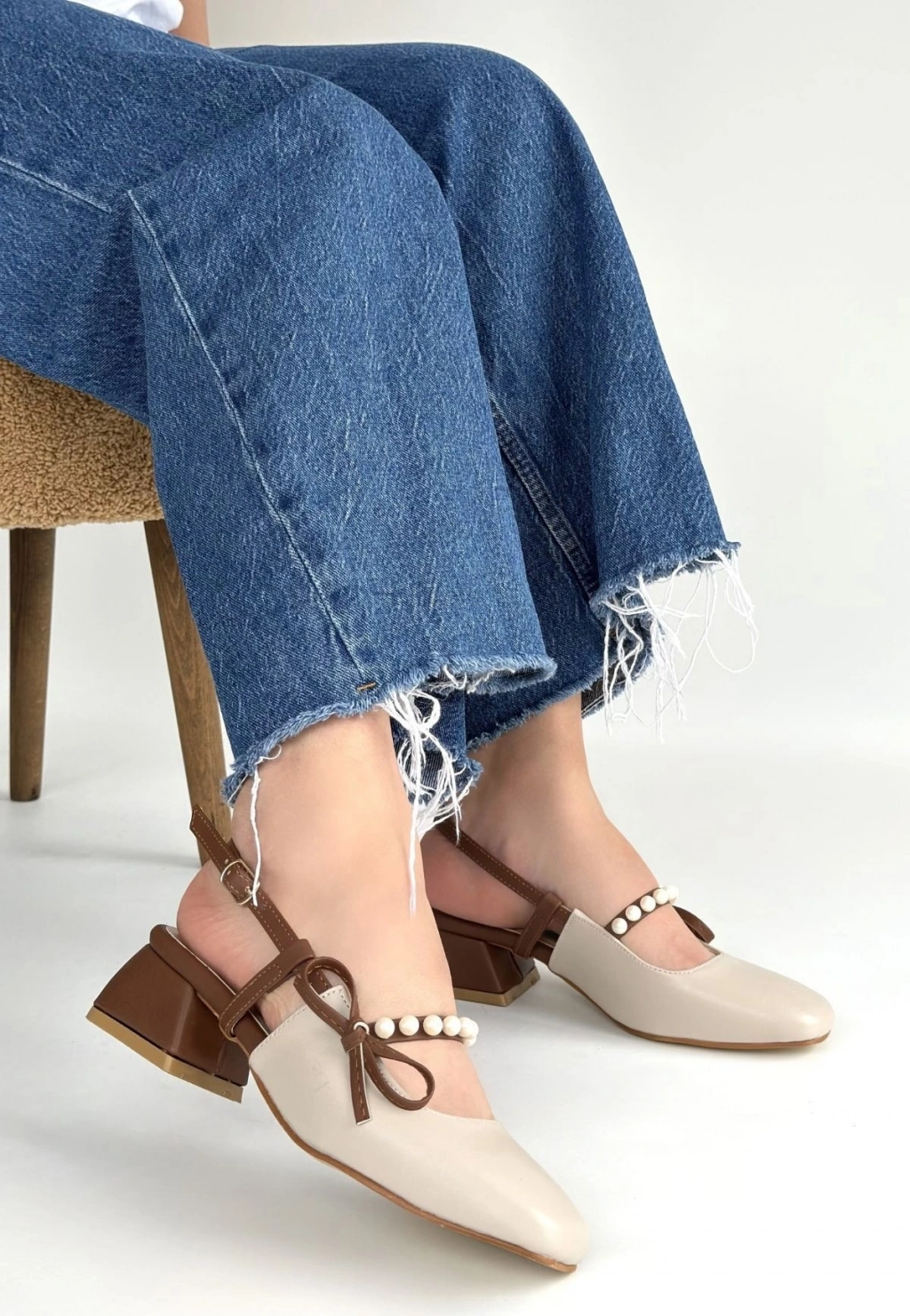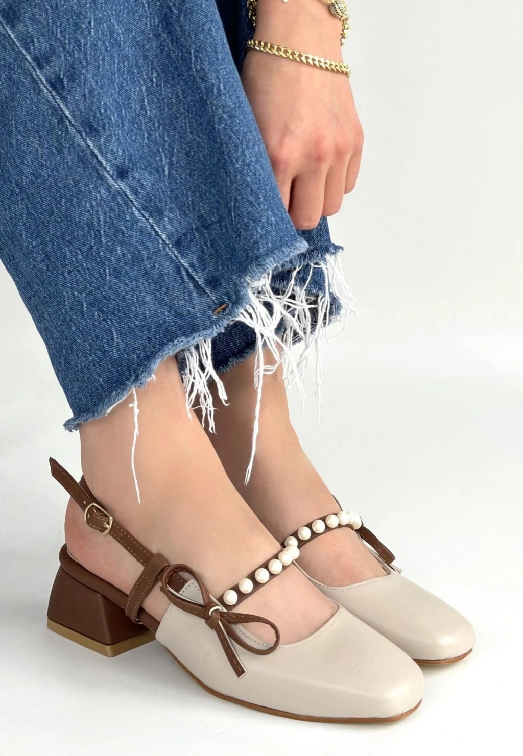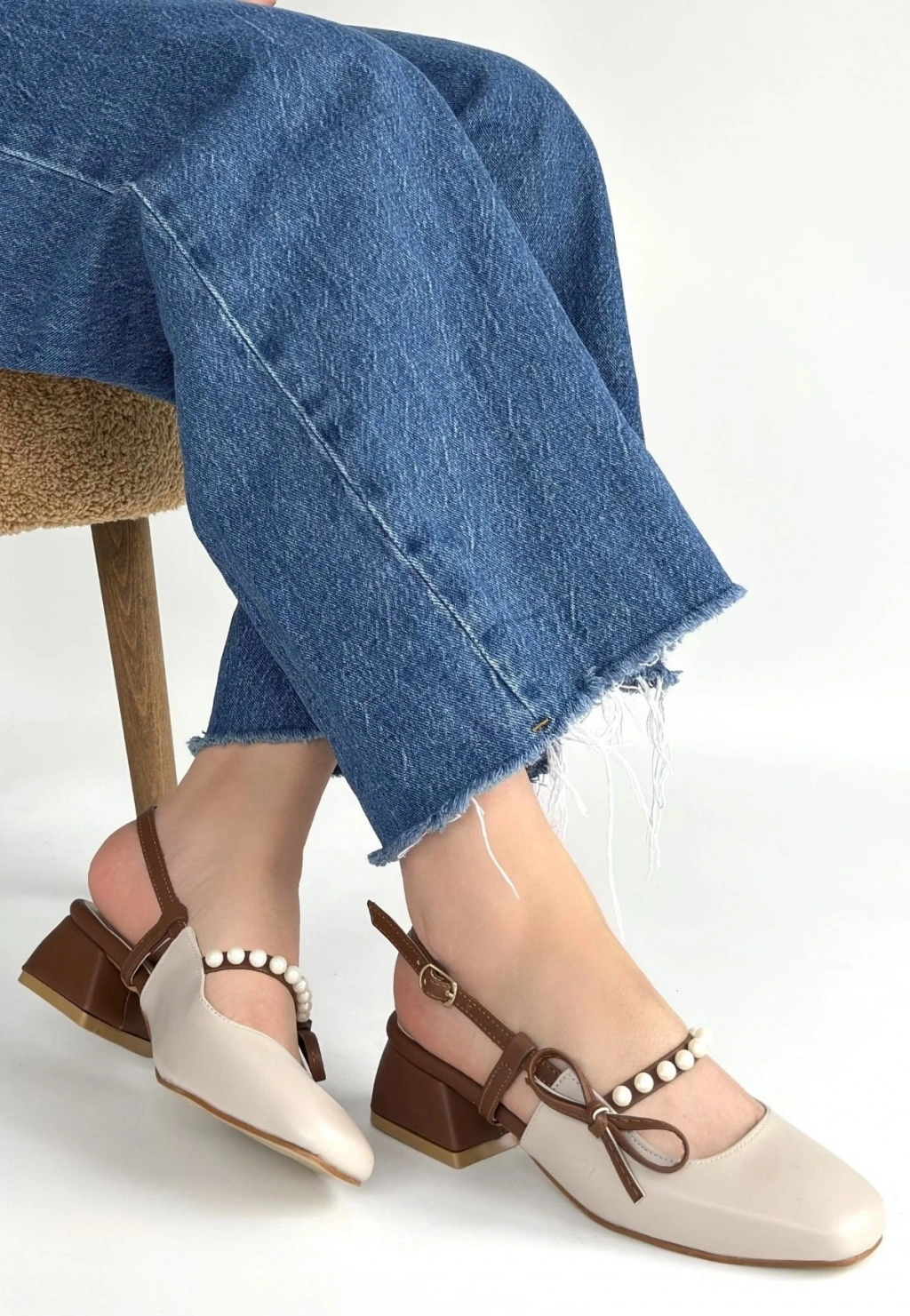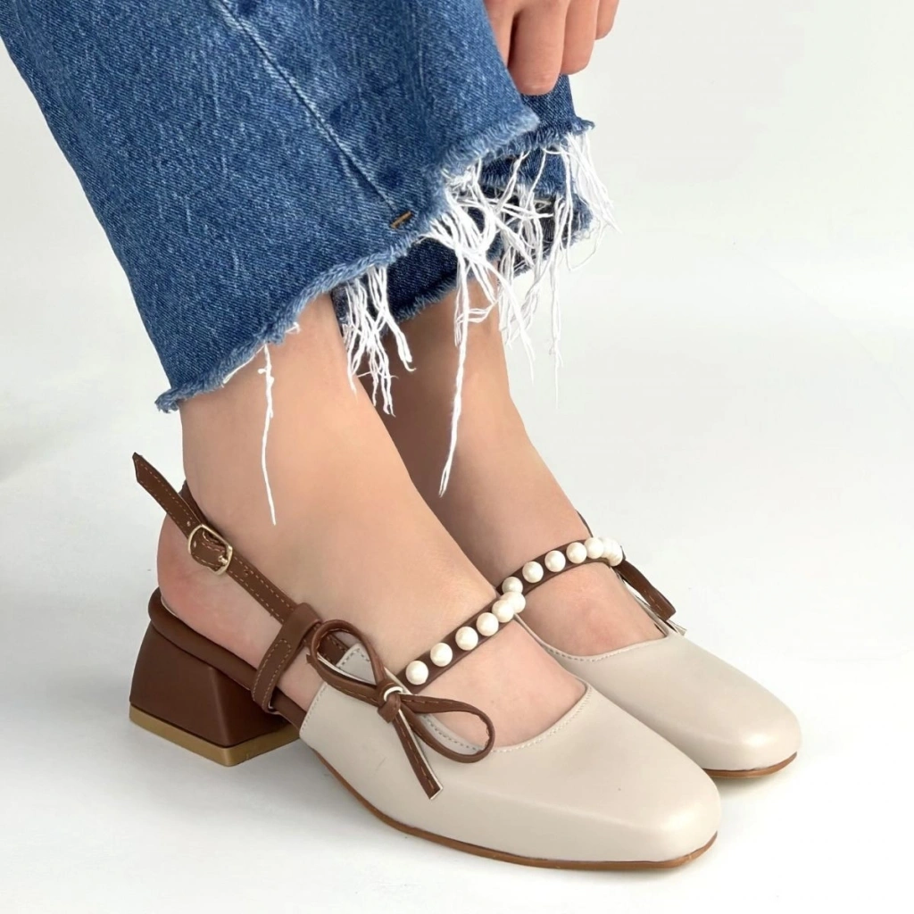Ceyda Bej Cilt Taba Detaylı Topuklu Ayakkabı
