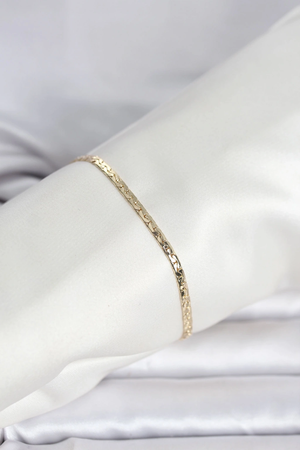CM 14K Gold Renk Yassı Ezme Zincir Model Kadın Bileklik