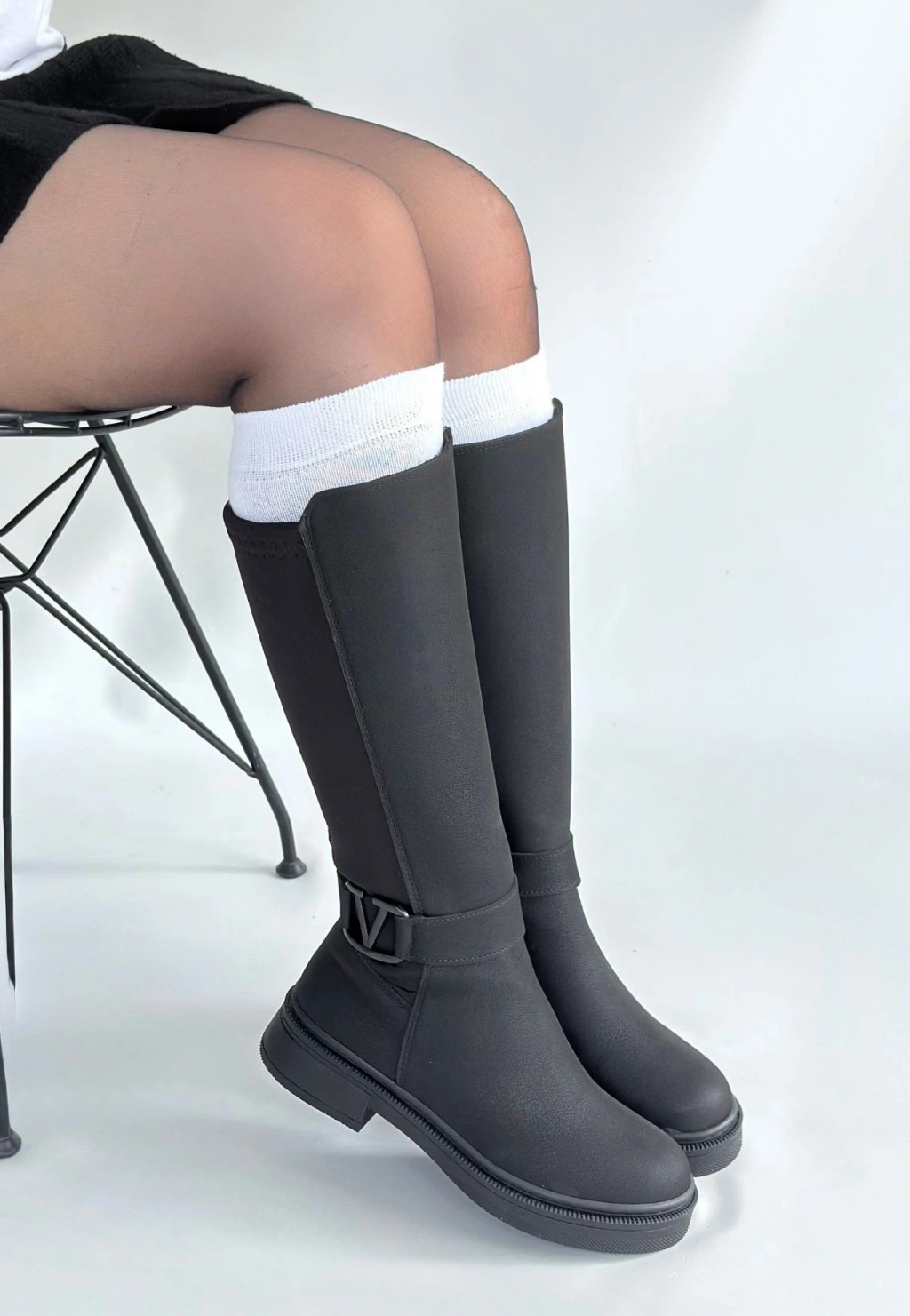 Detay: Topuklu Yandan Fermuarlı Diz Altı Çizme