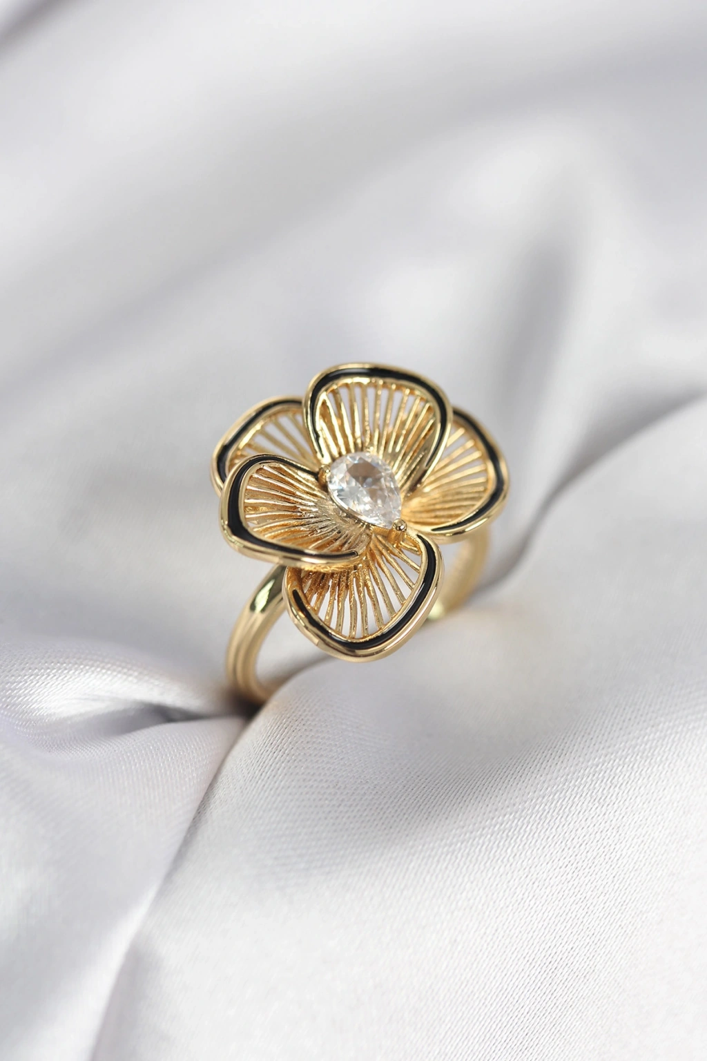 Gold Renk Çiçek Model Vintage Kadın Yüzük
