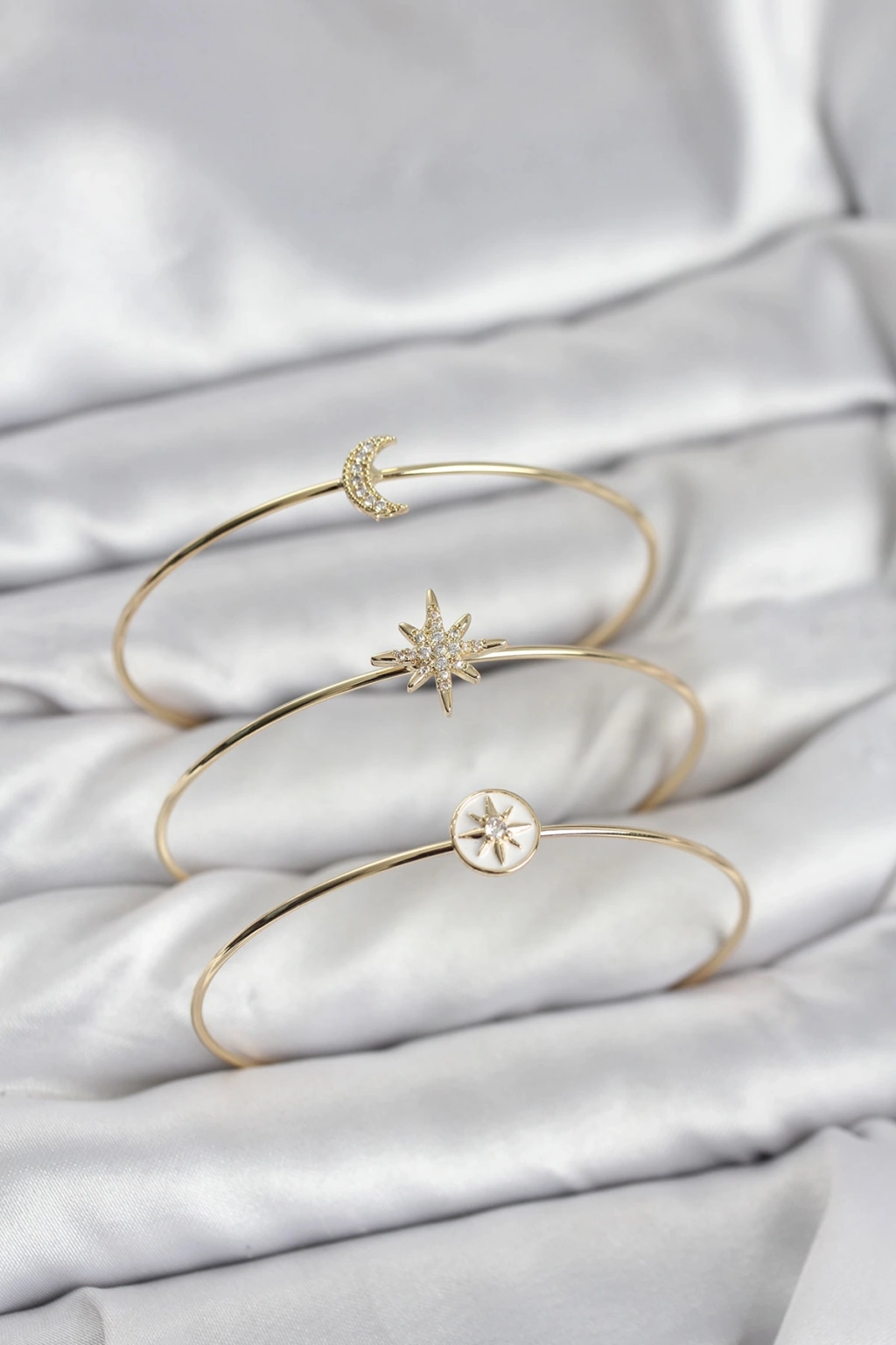 Gold Renk Zirkon Taşlı Kutup Yıldızı Model 3'lü Kadın Bileklik Kombini
