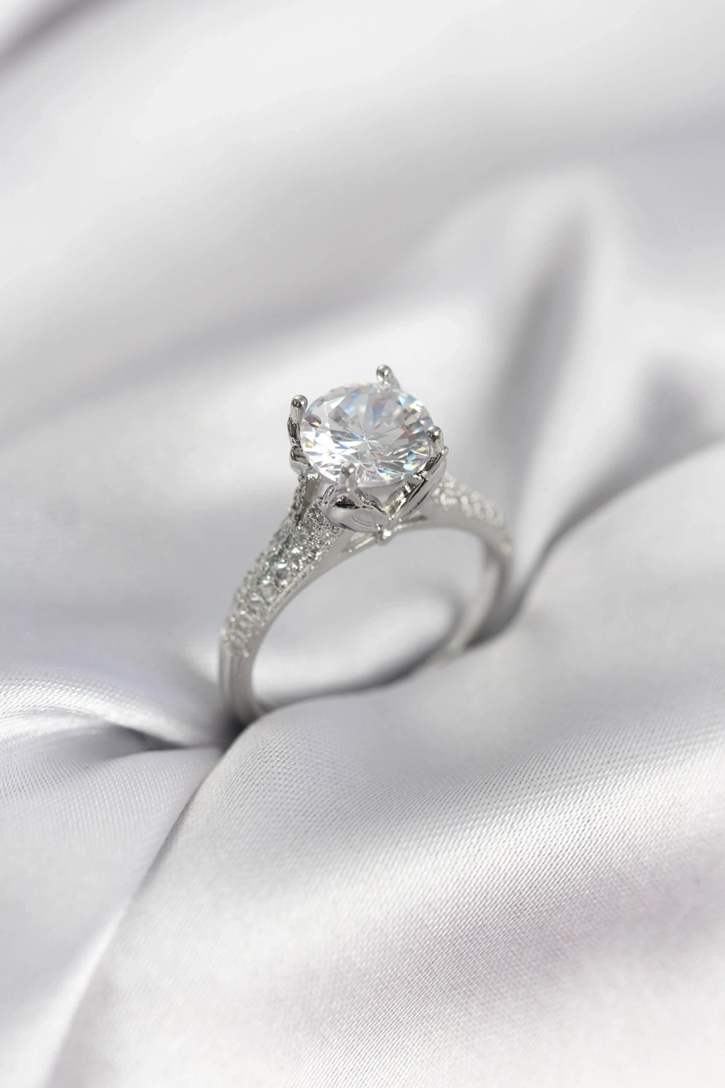 Gümüş Renk Tek Taş Model Zirkon Taşlı Kadın Yüzük