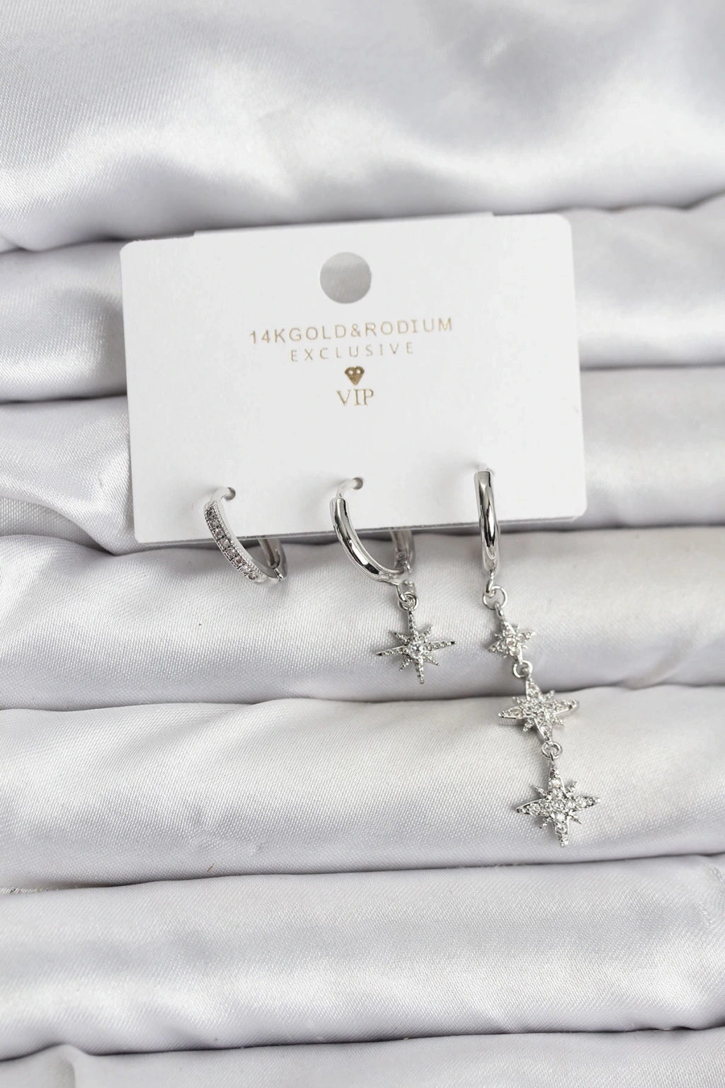 Kutup Yıldızı Model Gümüş Renk Pirinç 3'lü Kadın Küpe Seti