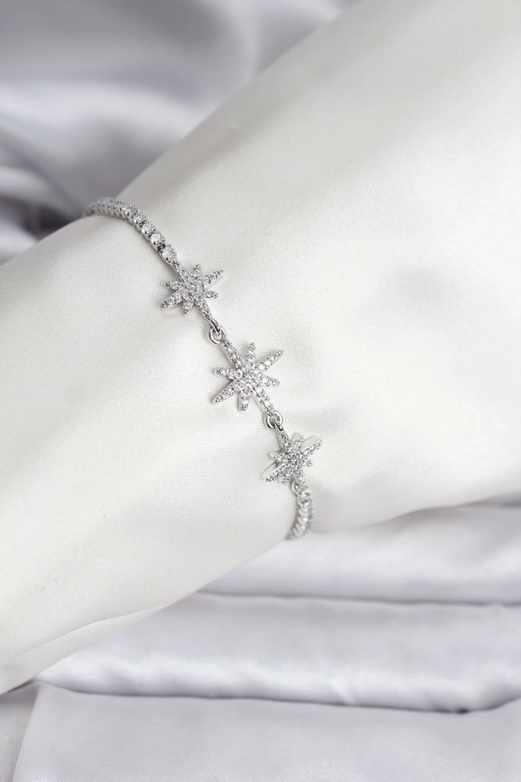 Kutup Yıldızı Model Zirkon Taşlı Gümüş Renk Su Yolu Kadın Bileklik