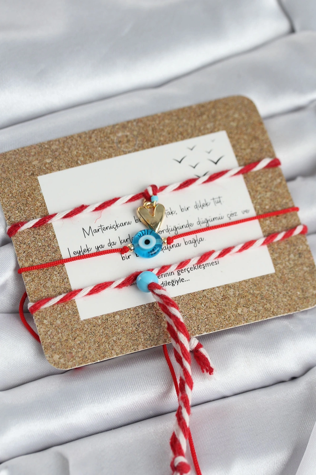 Marteniçka Bileklik 3'lü Sallantılı Kalp ve Nazarlı Model