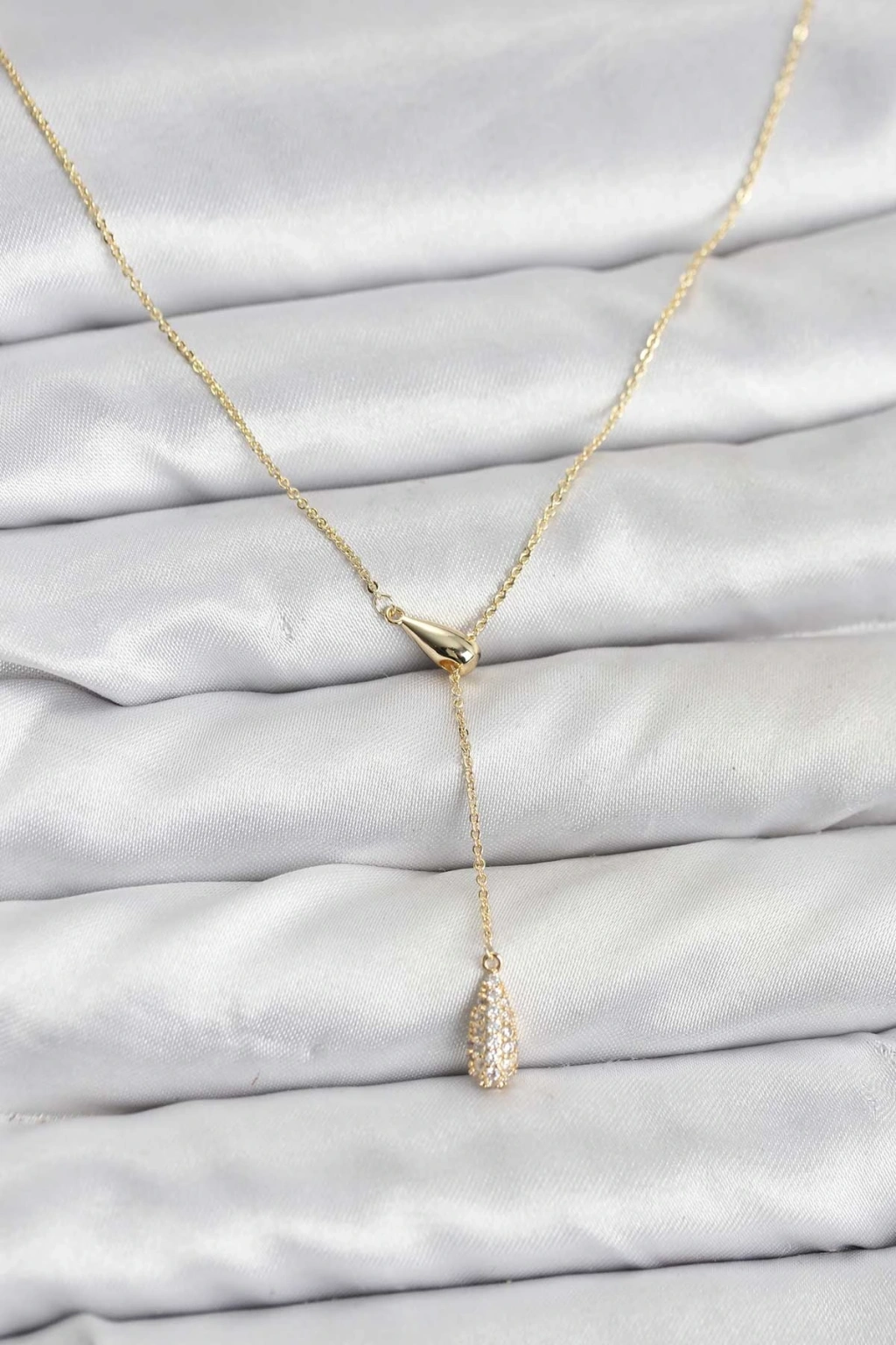 Pirinç Gold Renk Asansörlü Damla Model Kadın Kolye
