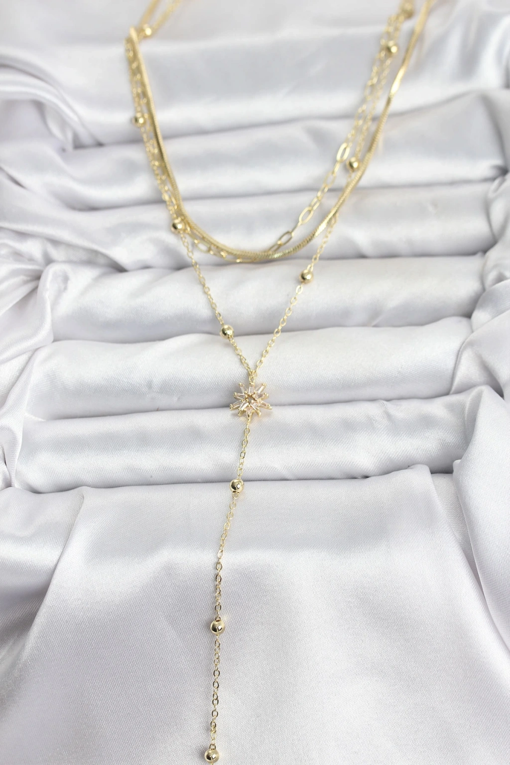Pirinç Gold Renk Kutup Yıldızı Model Detaylı 3'lü Kombin Y Kadın Kolye