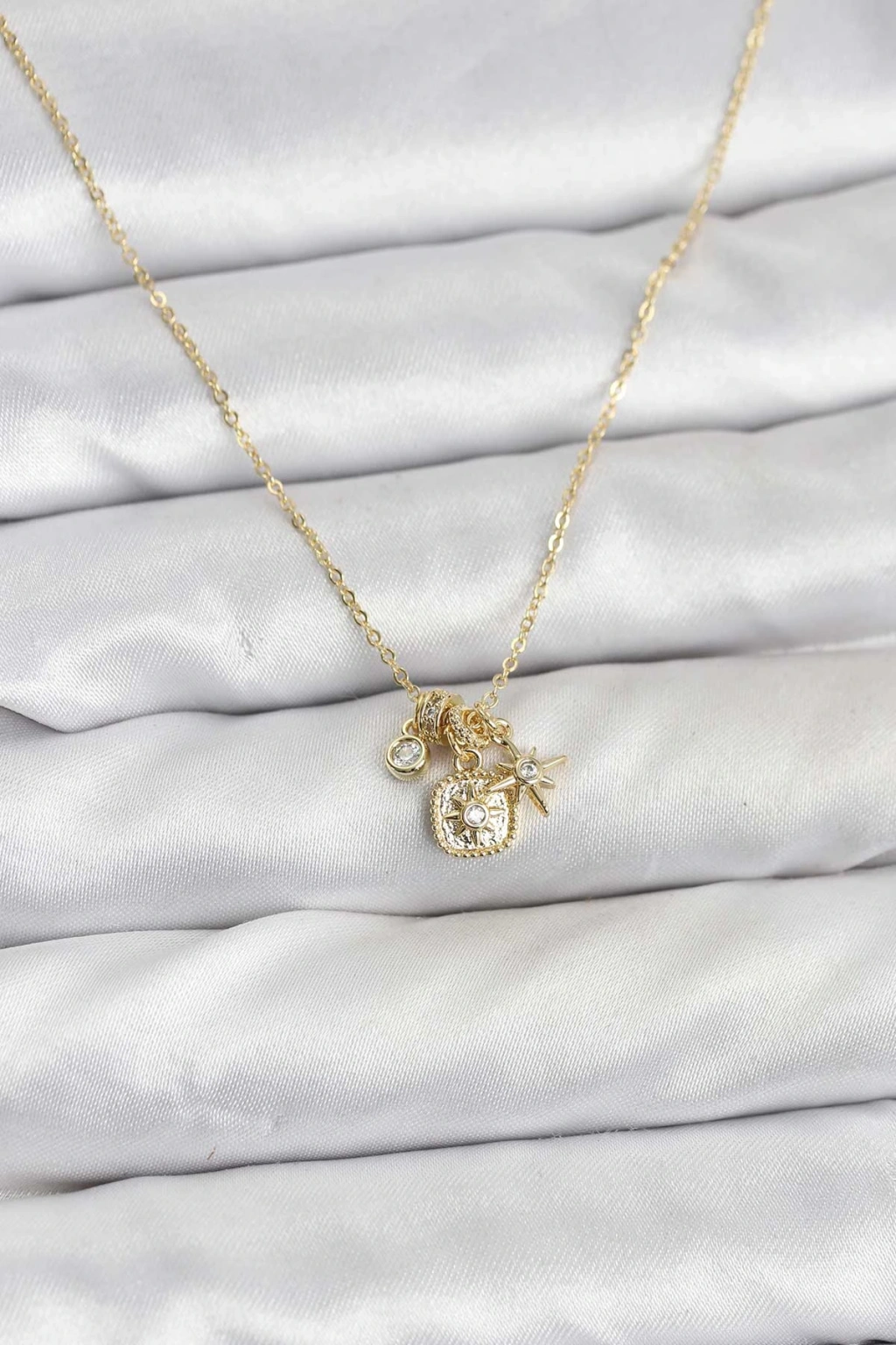 Pirinç Gold Renk Minimal Charmlı Kadın Kolye